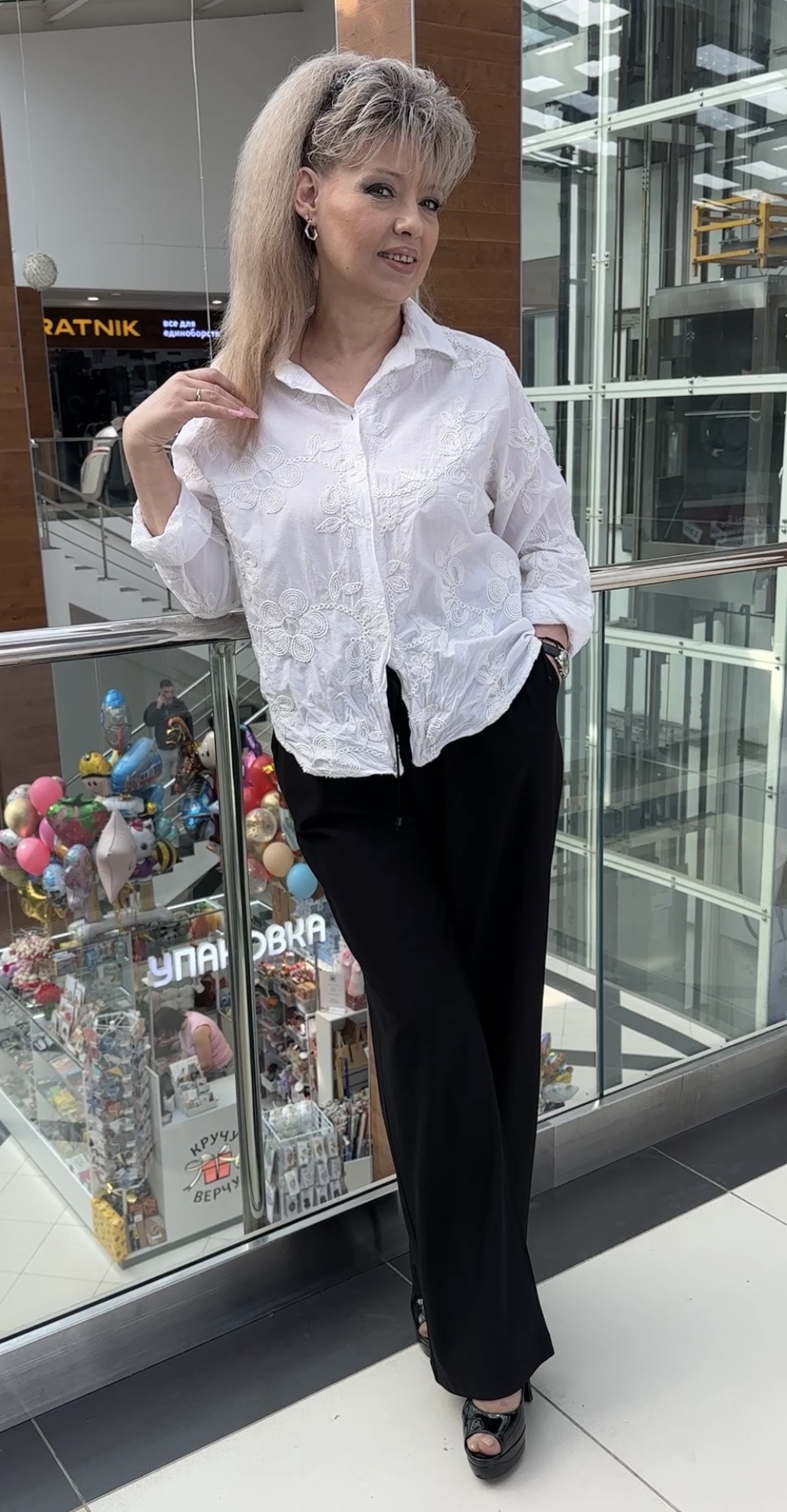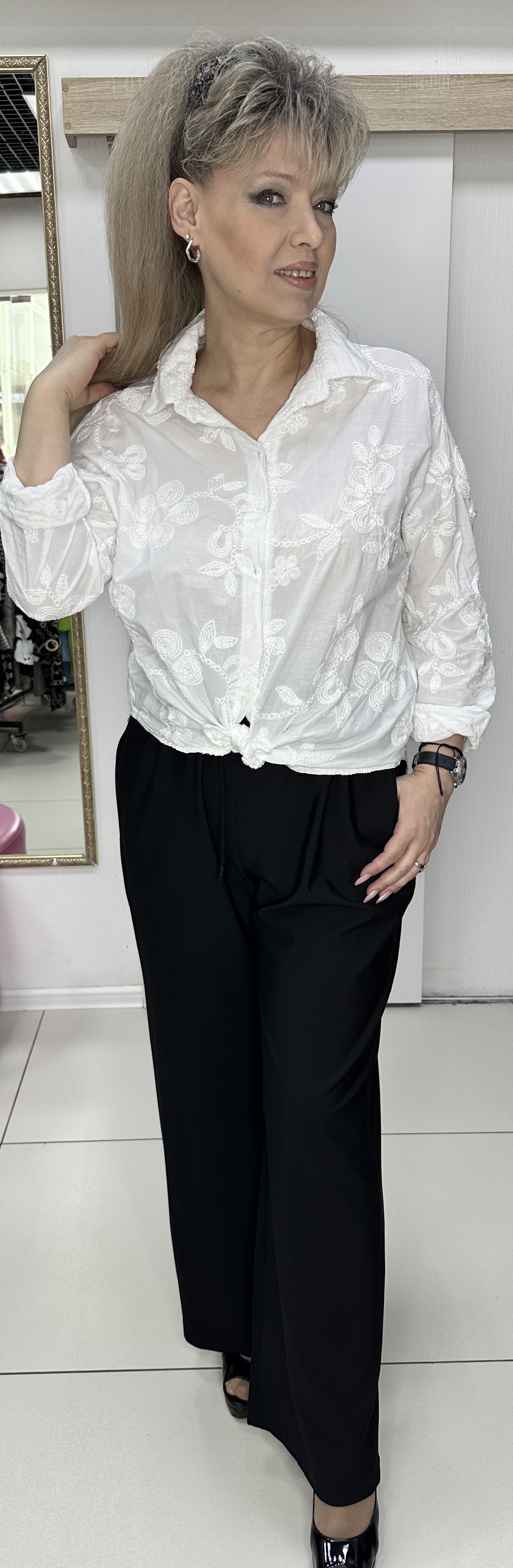Самая красивая белая, летняя рубашка-блузон! Рубашка с красивым шитьем на полной застежке, модель 0693 на любое мероприятие. Приталенный фасон с чуть укороченной лицевой стороной. Эта рубашка может служить как альтернатива нарядному платью. Модель смотрится очень стильно и красиво.