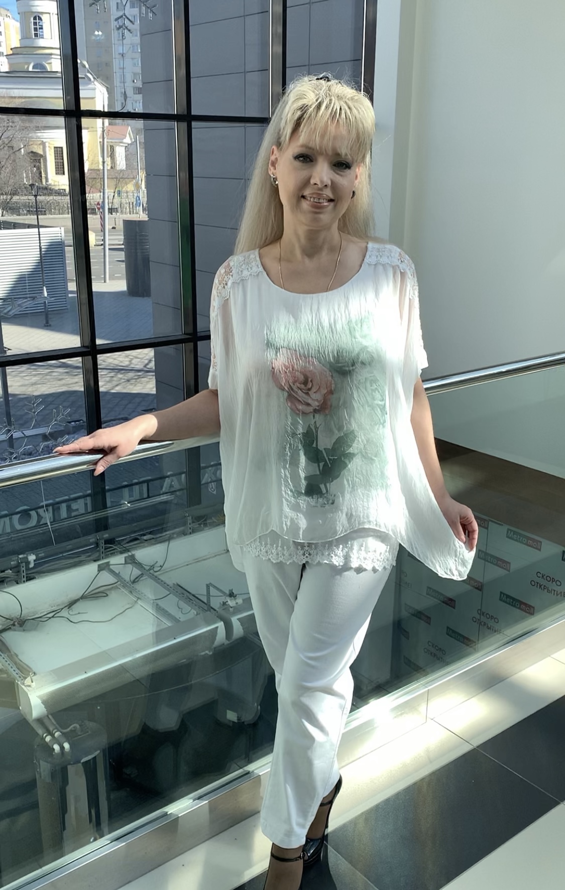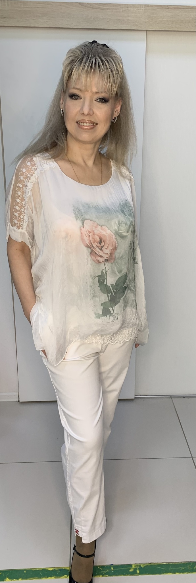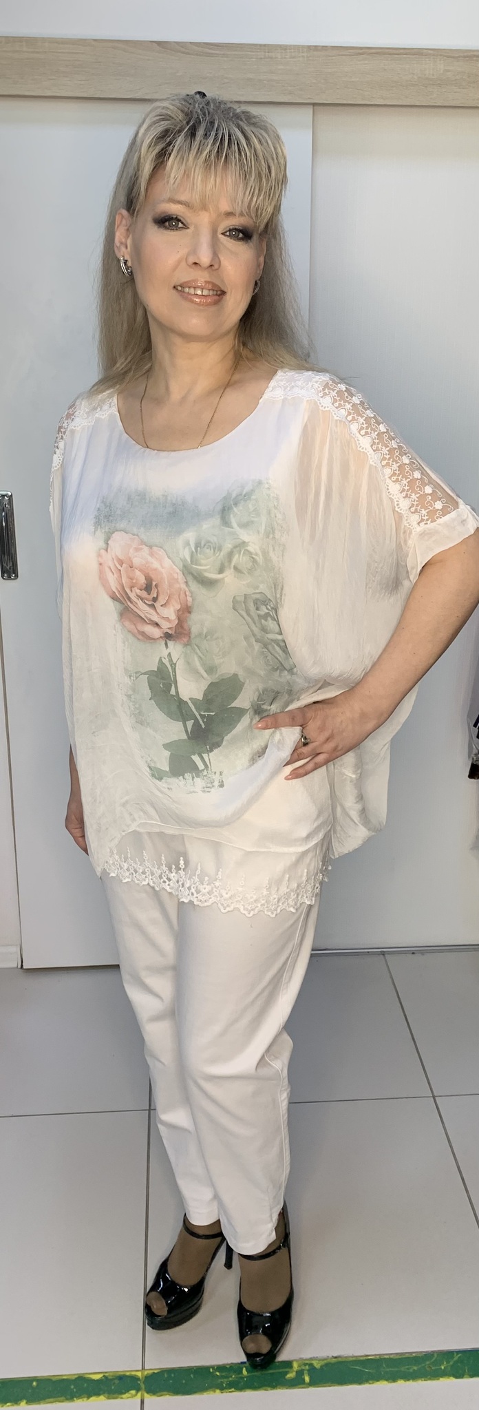 Если Вы подыскиваете себе нарядную одежду, то именно эта итальянская двойка должна появиться в вашем гардеробе. Светлый итальянский блузон-двойка из шелка модель 6310 подойдет на торжественный случай. Прекрасный вариант летний одежды для ценительниц хорошего соотношения цены и качества. Этот блузон отлично подойдет как к брюкам, так и к юбке, подчеркнет то, что нужно и скроет лишнее. Изюминка - кружева по плечам, низу и "воздушность" модели с разной длиной. Модель популярна у полных женщин. В наличии: белый, желтый и голубой цвета.