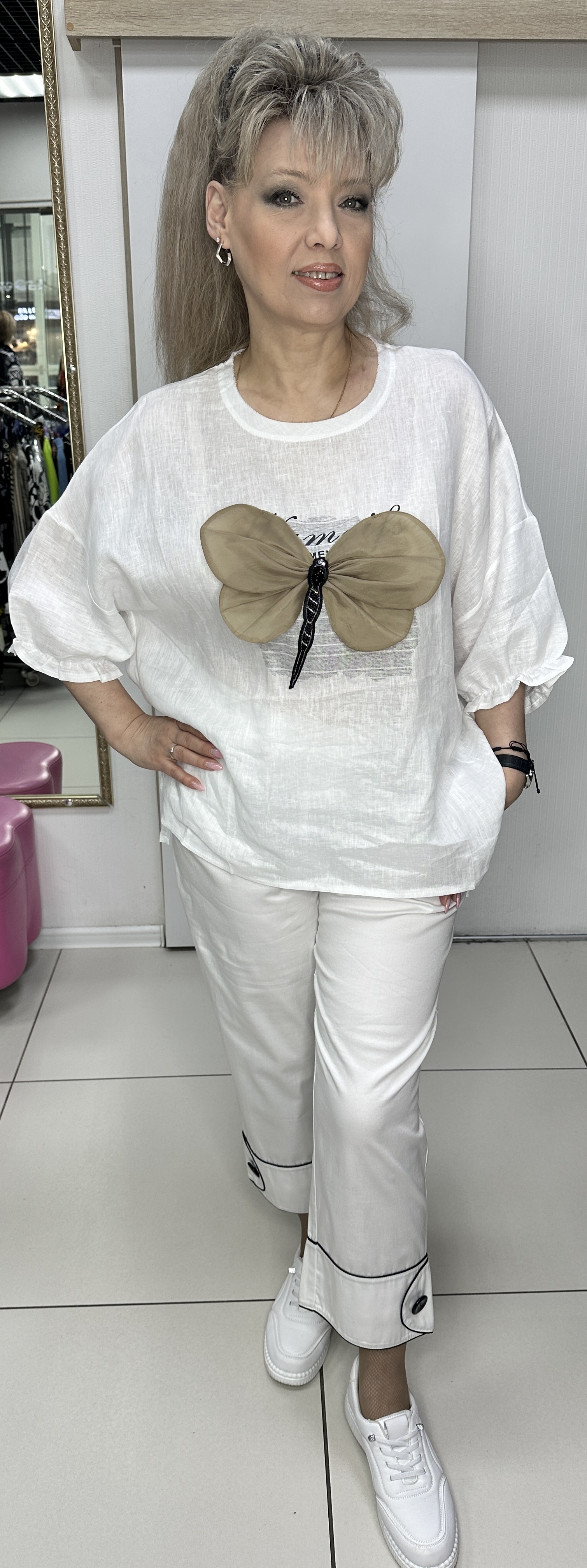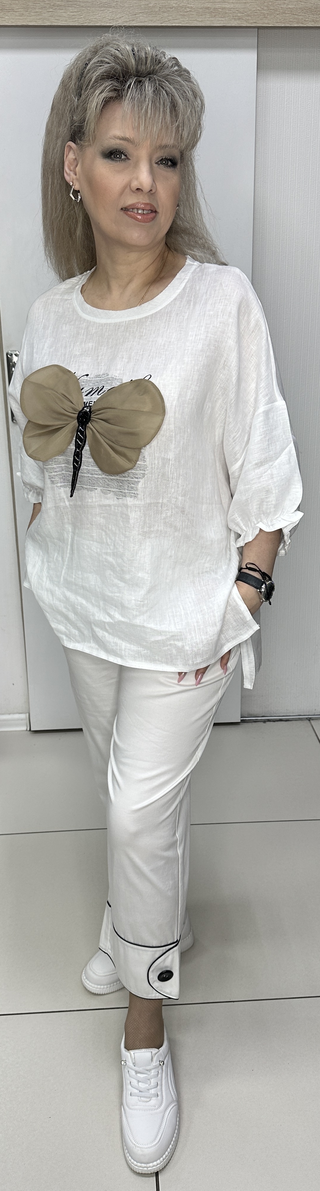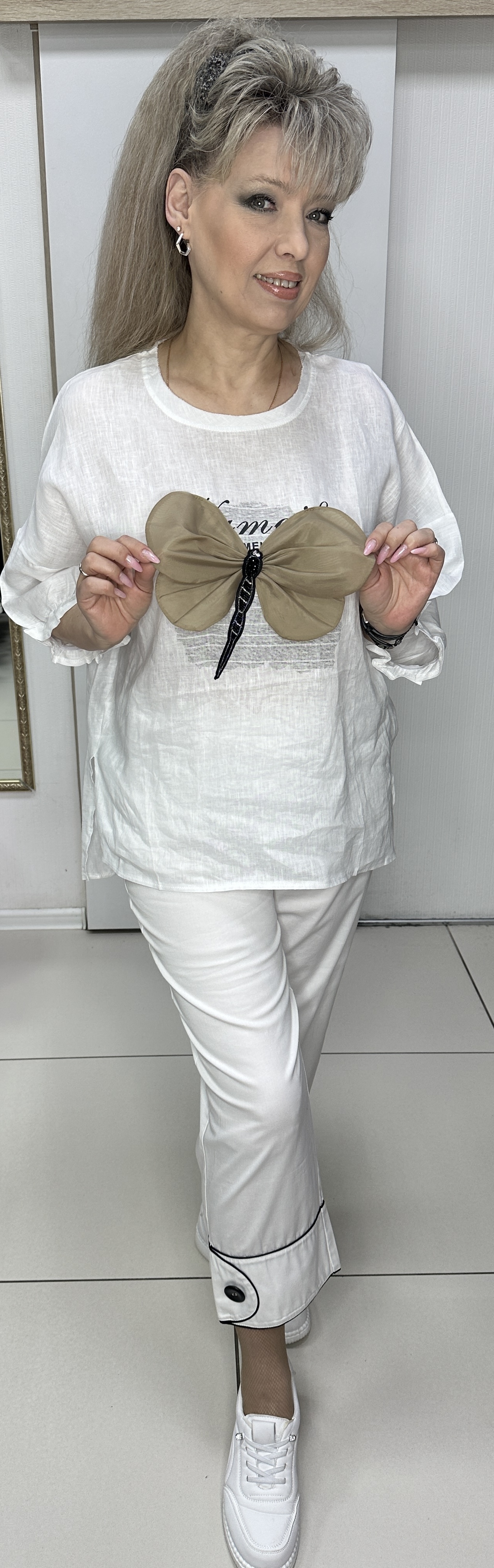 Вы можете купить недорого белую тунику/блузон с обьемным принтом в виде стрекозы модель 1606 в магазинах У Стаса по доступной цене. Блузон 1606: описание, фото, состав, производитель.