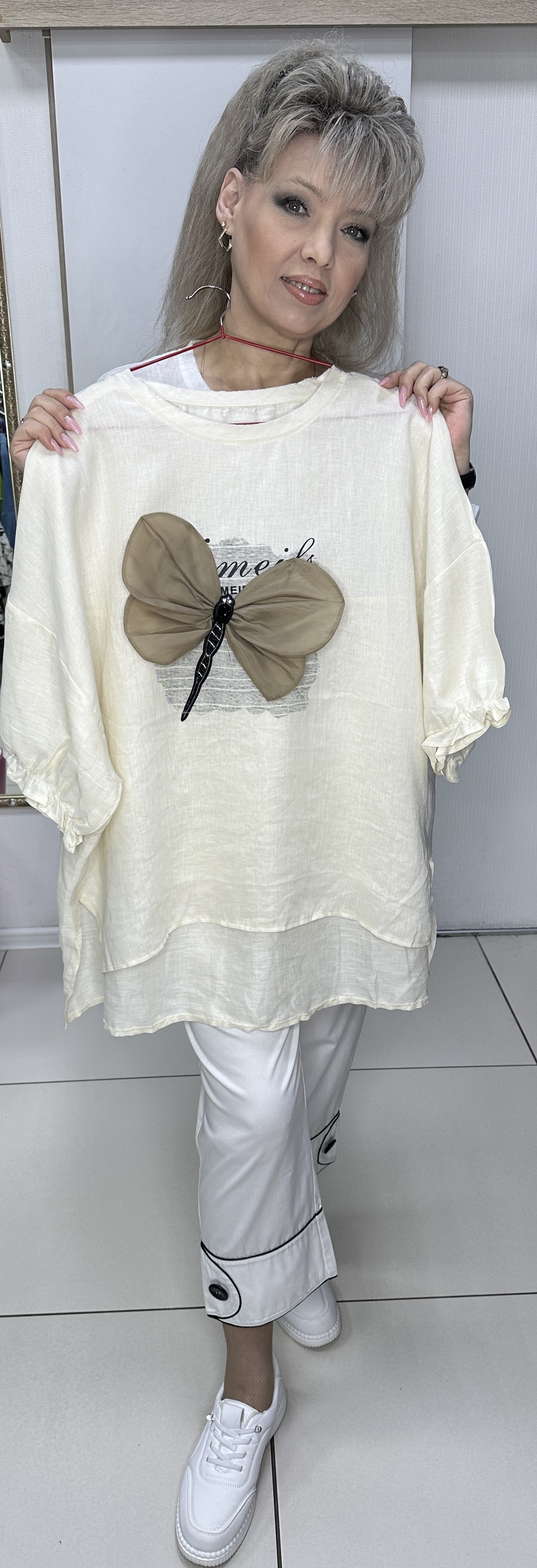 Для жары эта туника/ блузон просто находка. Фасон: прямой свободный, рукава с резинкой и спущенным плечом. Для лета это самый востребованный фасон и модель 1606 на каждый день. У туники разная длина по лицевой стороне короче. Изюминка: по лицевой стороне пришита капроновая стрекоза. Очень стильная туника/блузон. В наличии: белый и бежевый цвета.