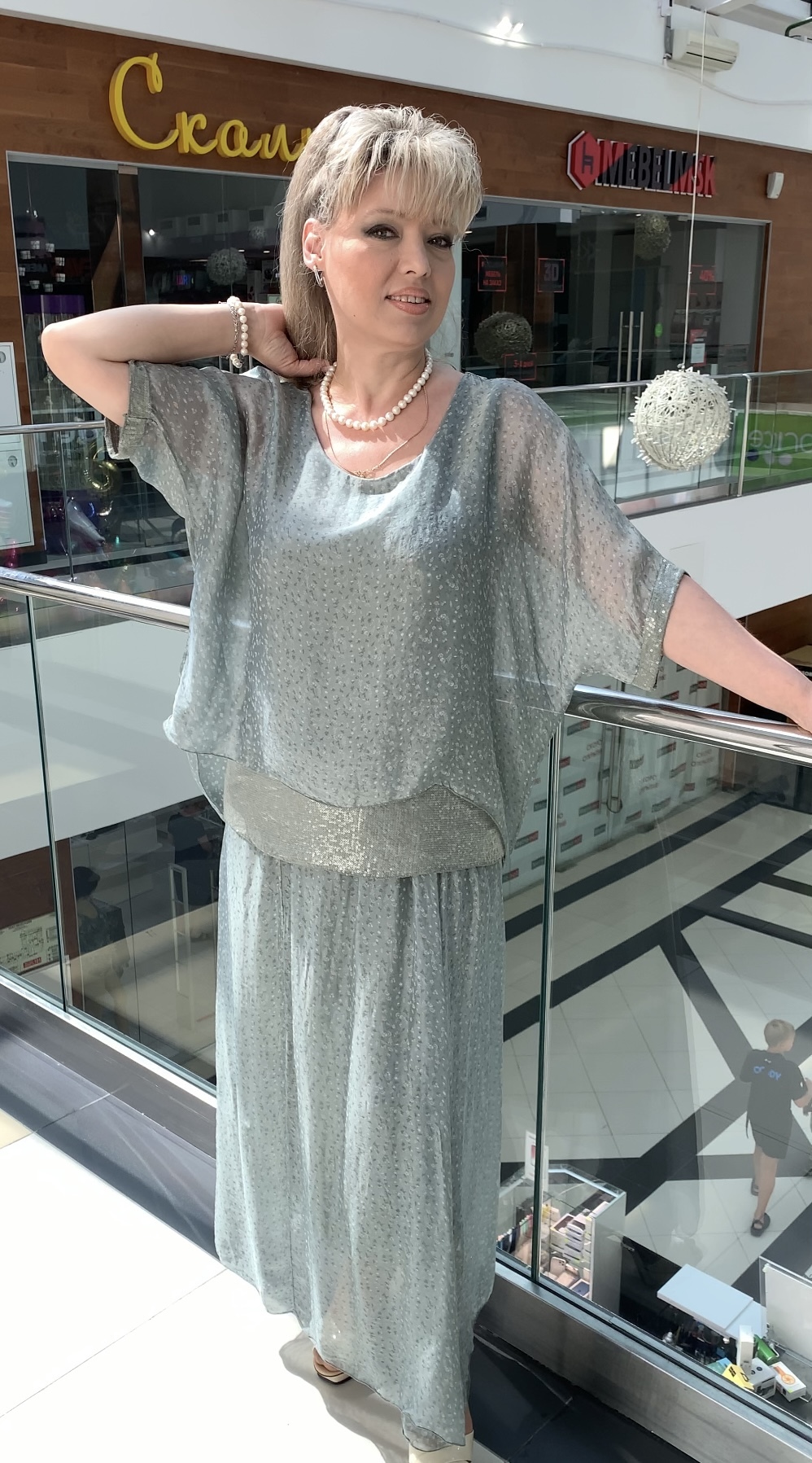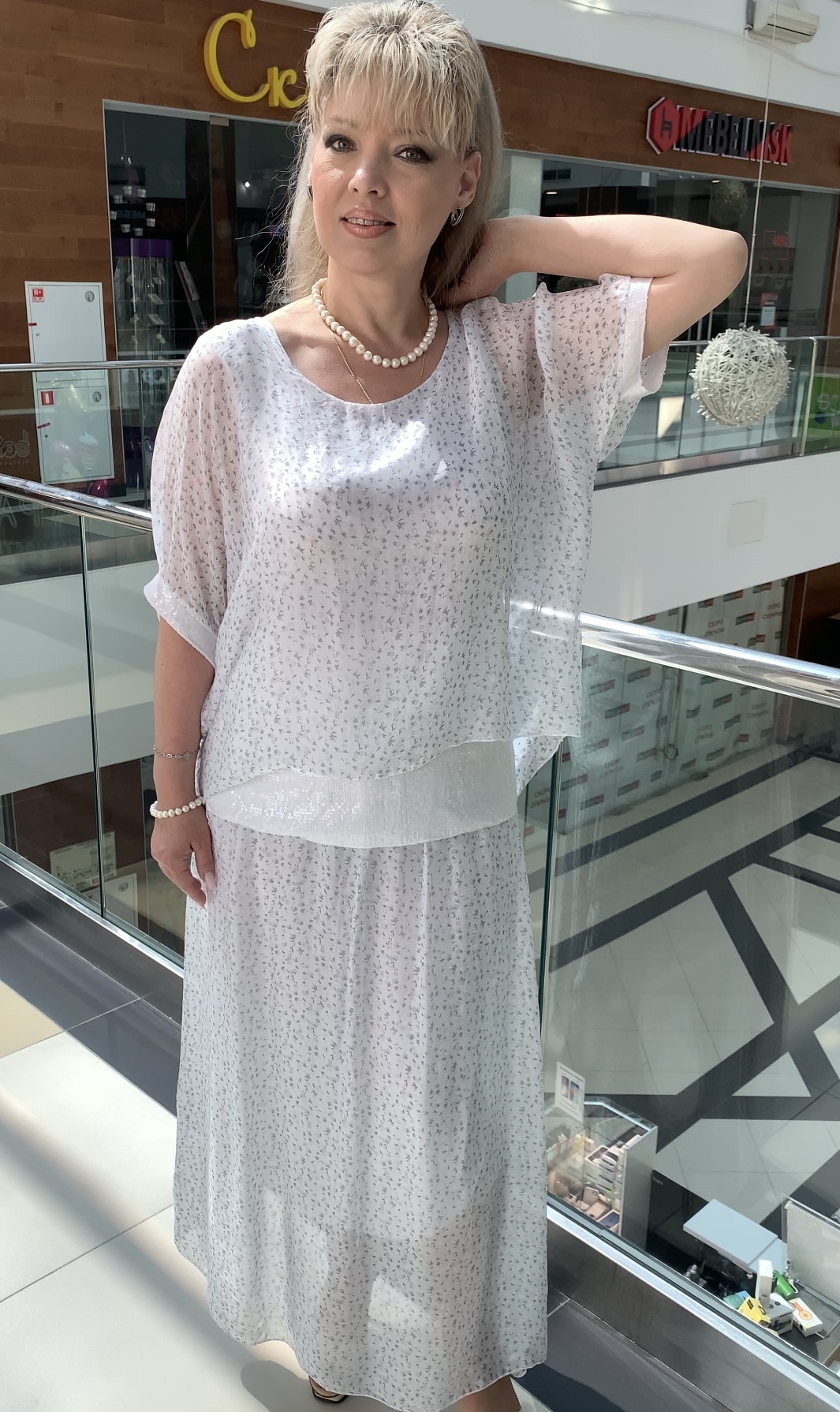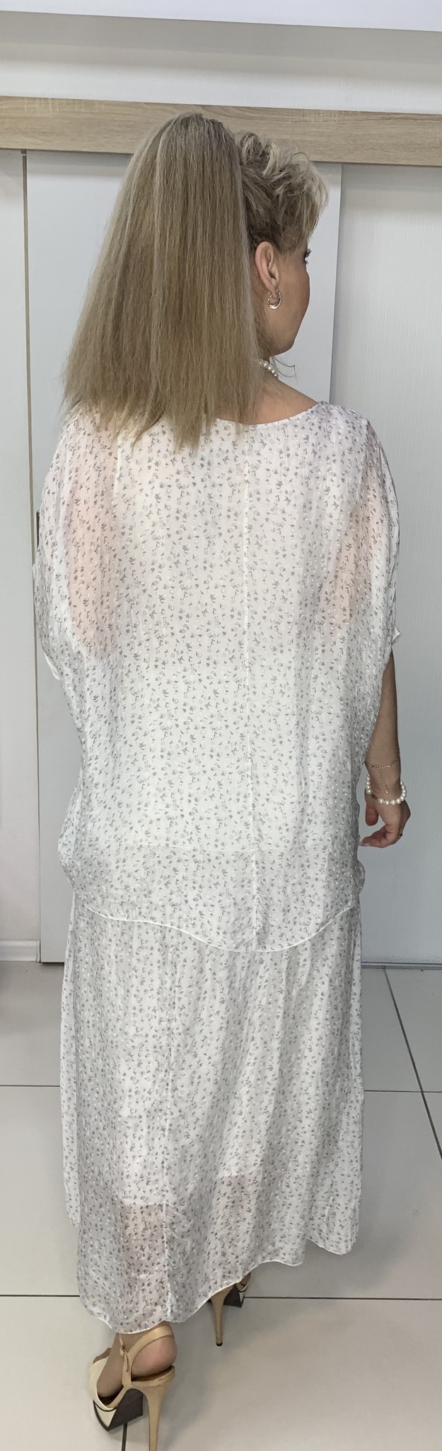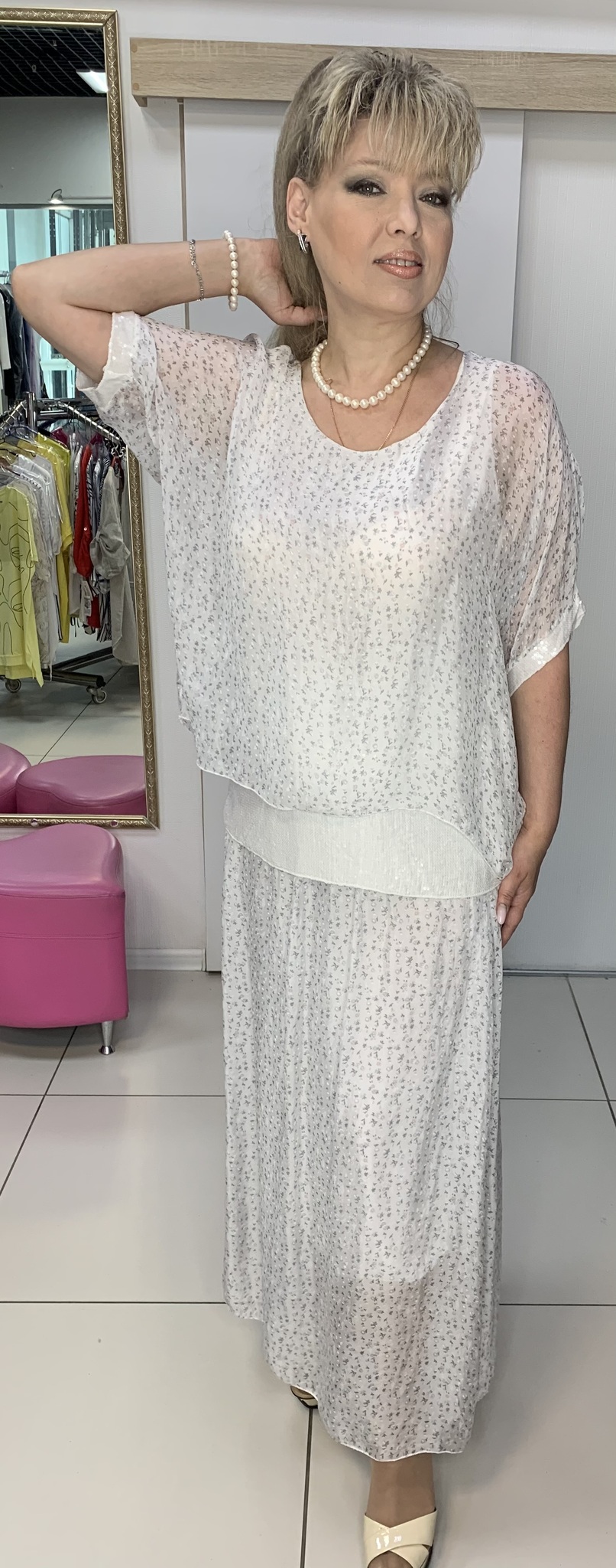 ВАУ! Какая прелесть этот костюм! Длинная на подъюбнике юбочка и на широкой резинке + блузон-туника с принтом из блестящих пайеток. Именно эта модель 6969 может служить альтернативой нарядному платью на любое праздничное мероприятие. Очень стильный и тактильно приятный костюм. В наличии: белый, бежевый, пудрово-розовый и оливковый цвета.