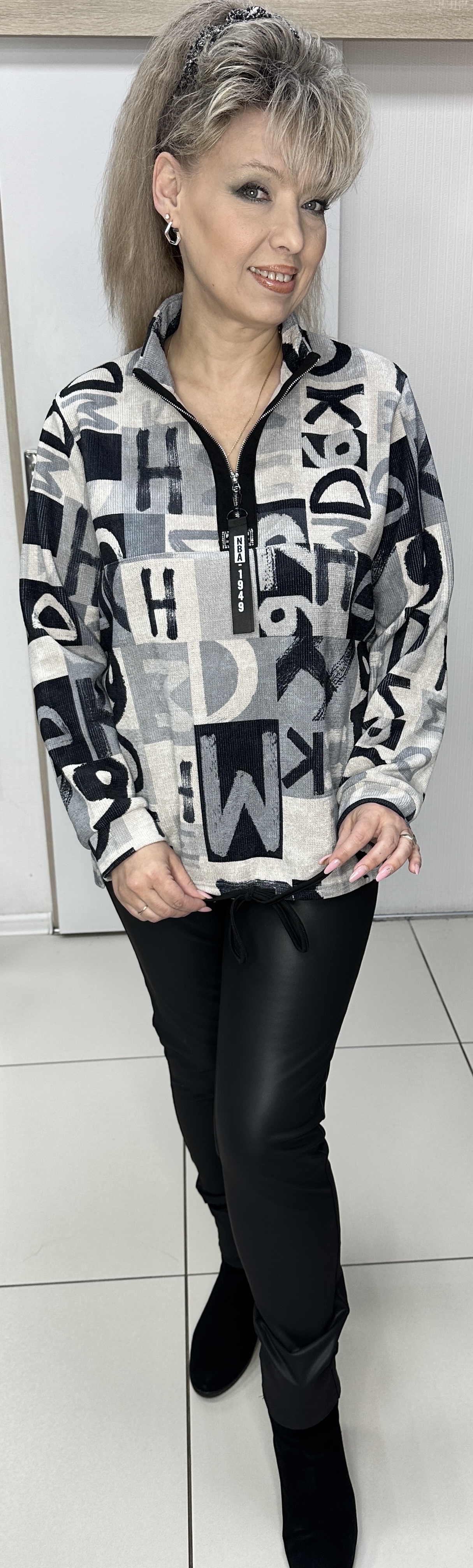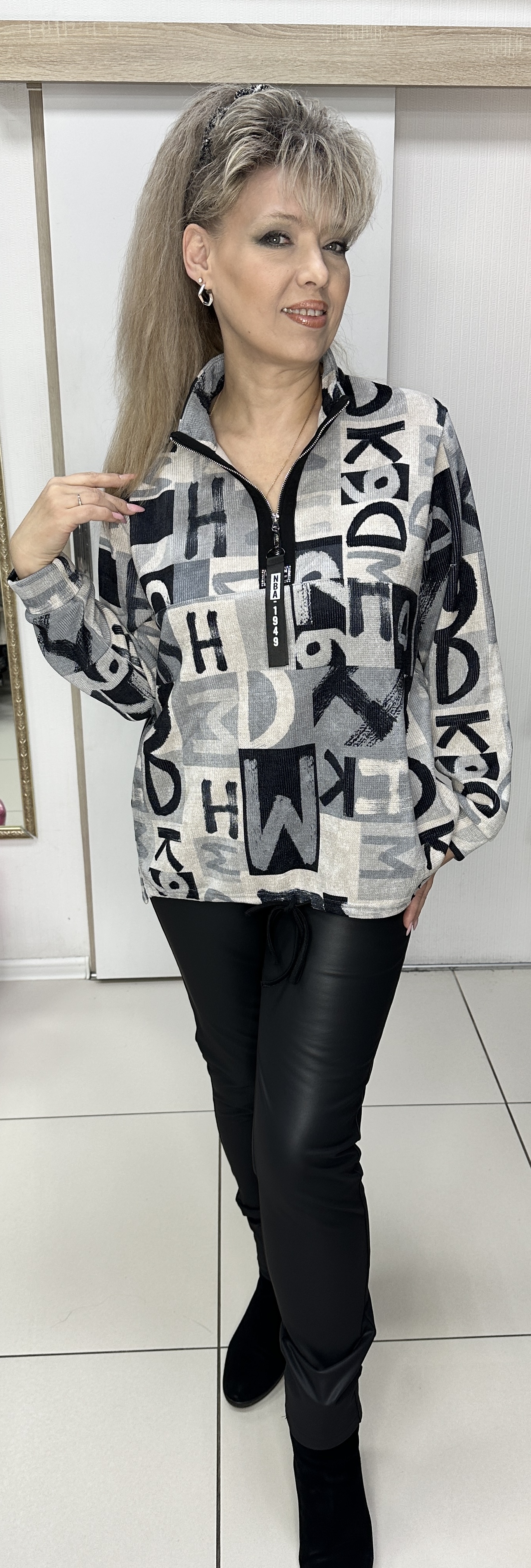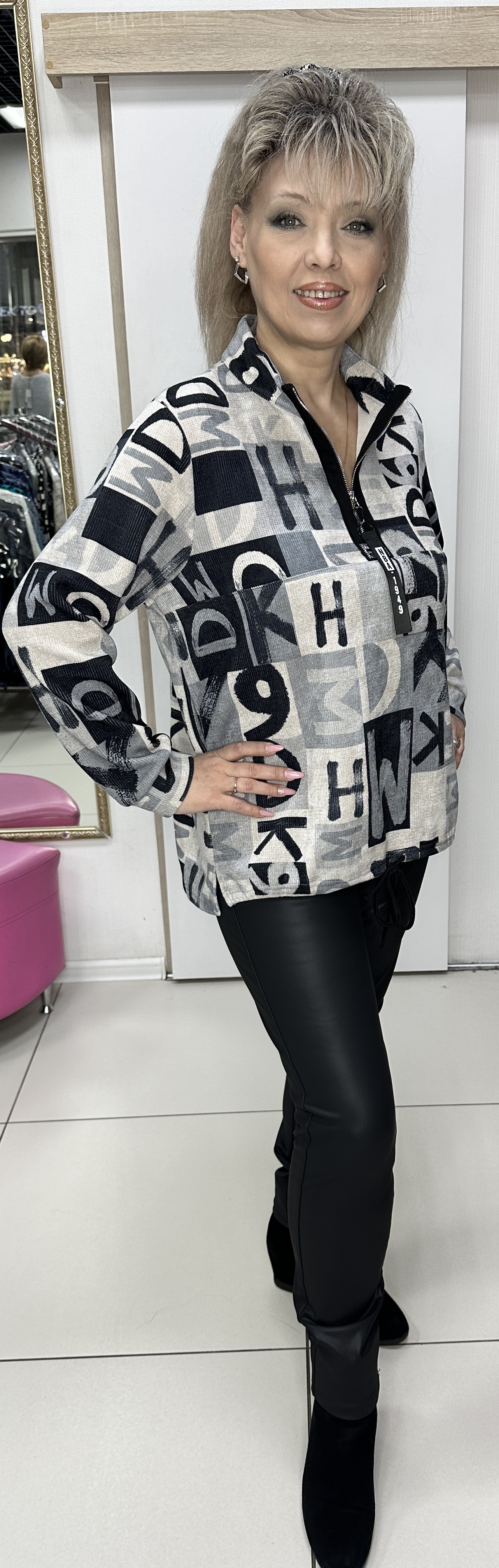 Красивый, стильный блузон-поло из микро вельвета модель 385, который должна иметь каждая модница! Оригинальность блузону придает расцветка из латинских букв разной величины и цвета. Поло застежка молния и воротник-стойка, длинные рукава, кулиска по низу лицевой стороны. Материал блузона очень приятен на ощупь и вам будет всегда комфортно. Хорошо сочетается с любым низом. Рекомендуем стильным девушкам.