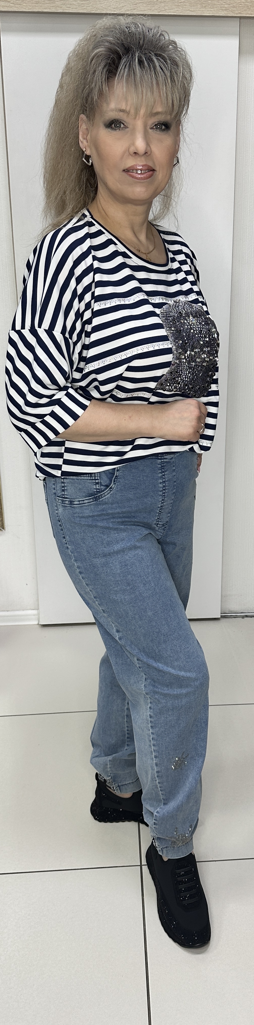 Любите спортивный стиль в одежде? Тогда именно этот блузон/свитшот в полоску со стразовым принтом в виде бейсболки модель 3333 на любое мероприятие с друзьями. Модель отлично смотрится с джинсами, бриджами. Самая трендовая вещь в этом сезоне!