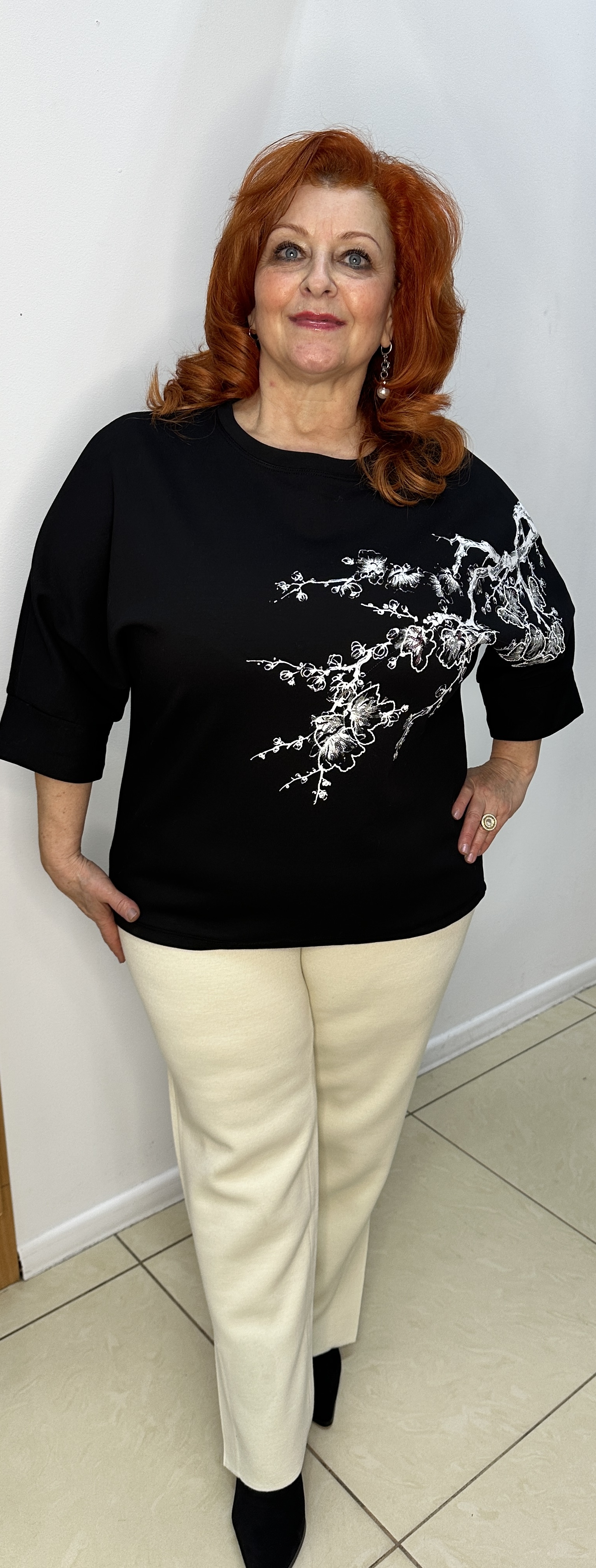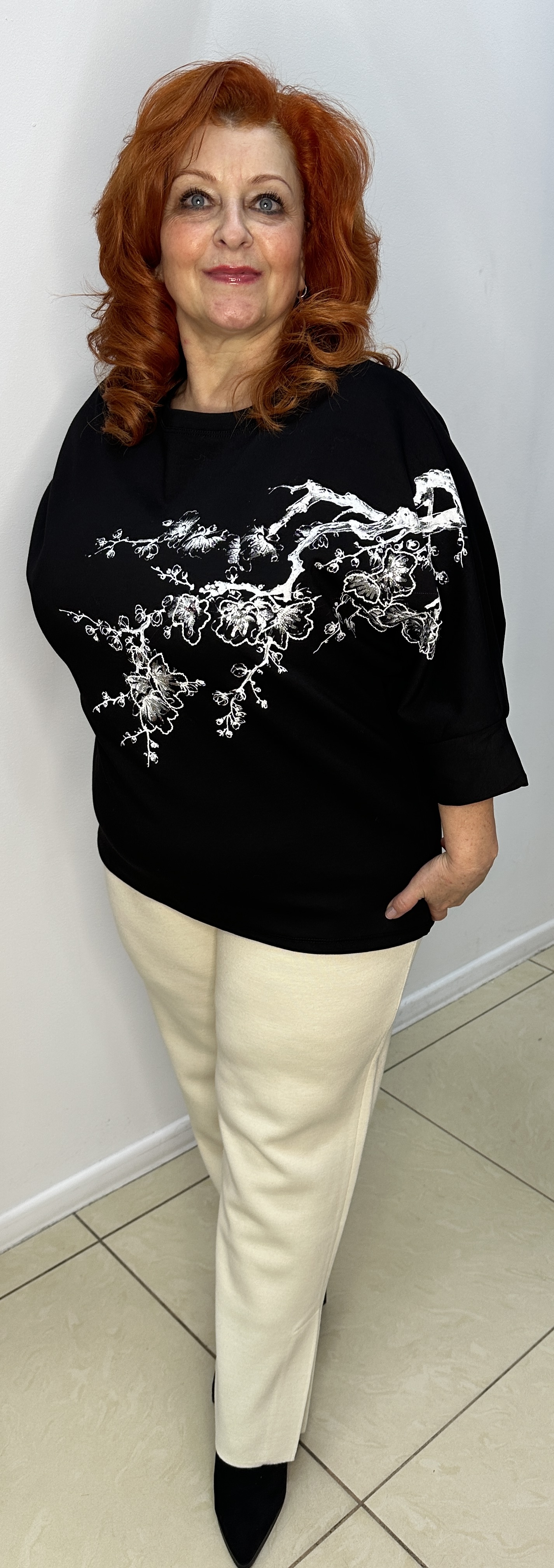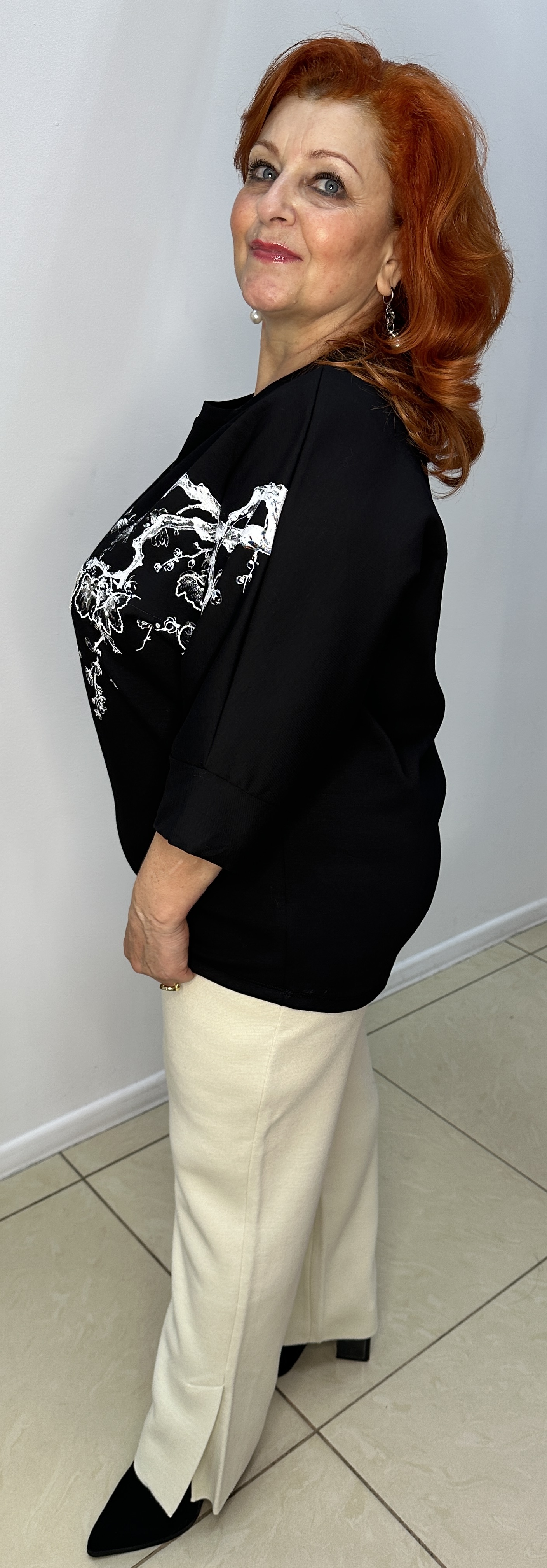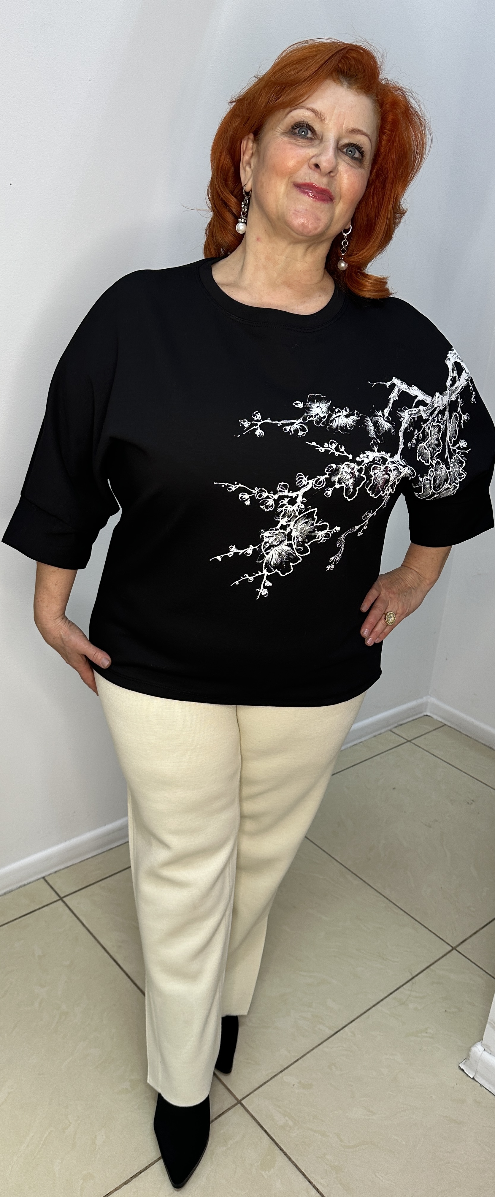 Черная молодежная толстовка-лонг слив, которая имеет большой успех у женщин любых возрастов. Модель 2501, это интересный принт белая веточка с блестящими пайетками по лицевой стороне. Возраст в таком лонг сливе стремительно убывает. Фасон у толстовки "летучая мышь" к низу заужен. Шикарная вещь!