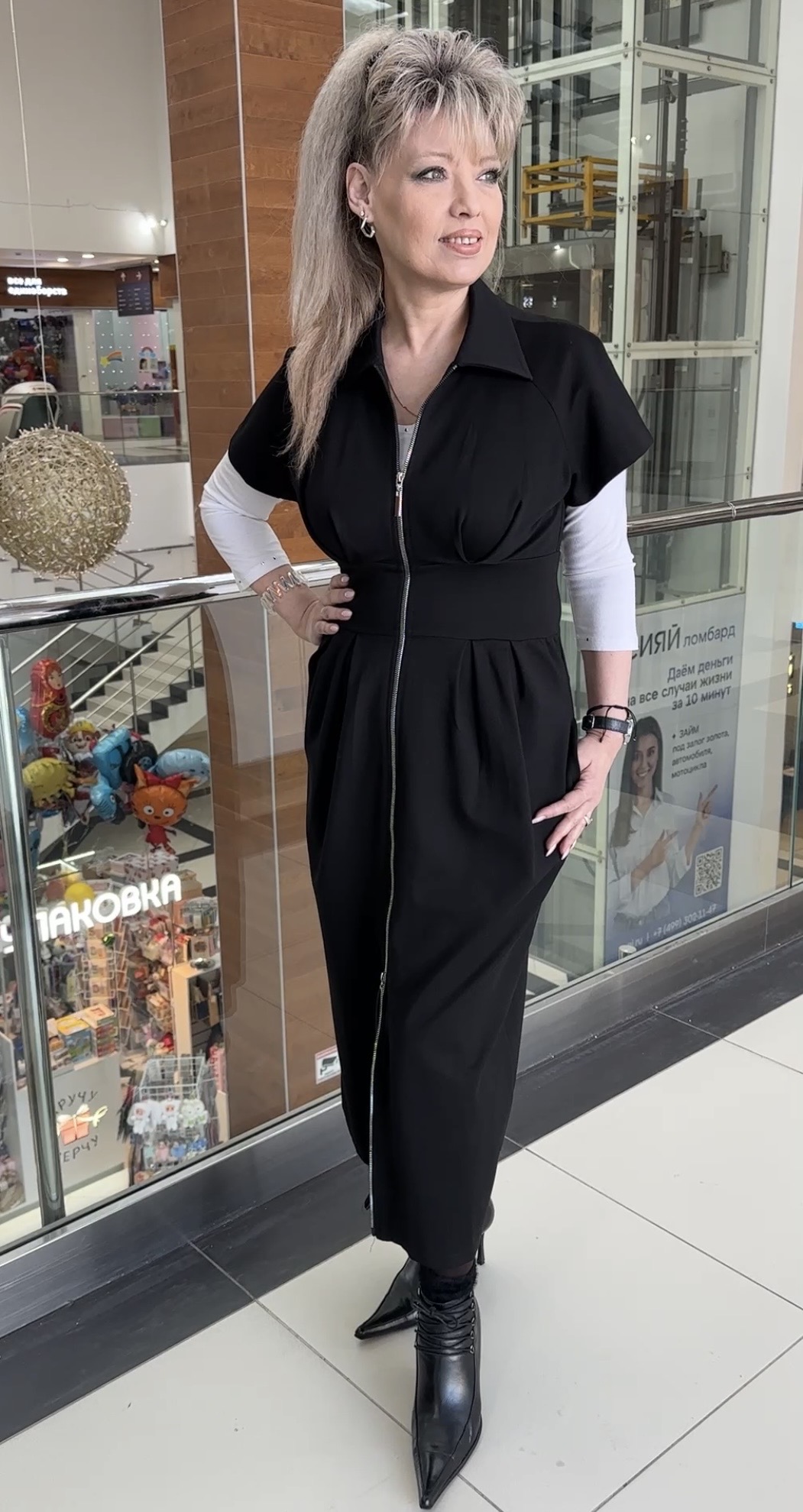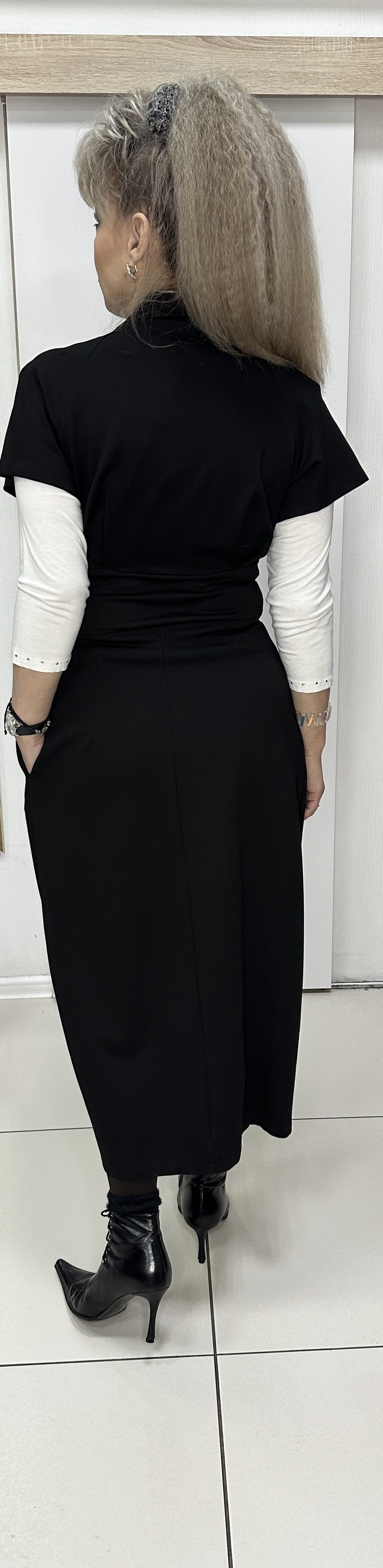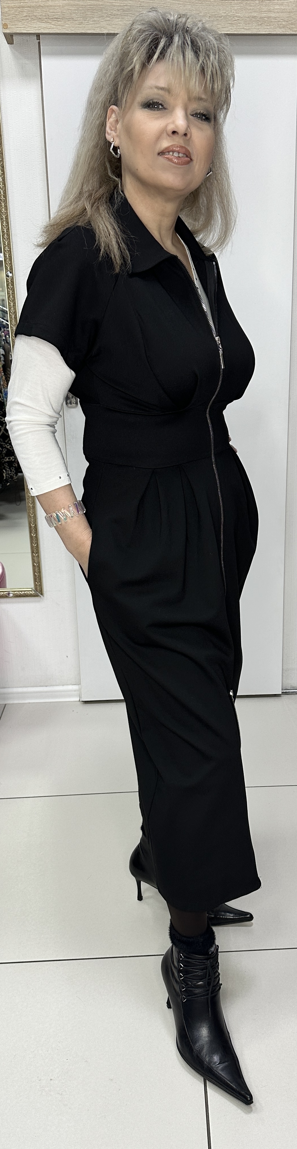 Про эту модель платья хочется сказать : Очень просто и стильно! Черное длинное платье с короткими рукавами, отрезной талией и кармашками на молнии модель 2899 подойдет на каждый день и на торжественный случай. Фасон платья на молнии с "мягкими" заложенными складками и "баллончиком" к низу. Возраст в этой модели стремительно убывает, делая свою обладательницу молодой, эффектной!