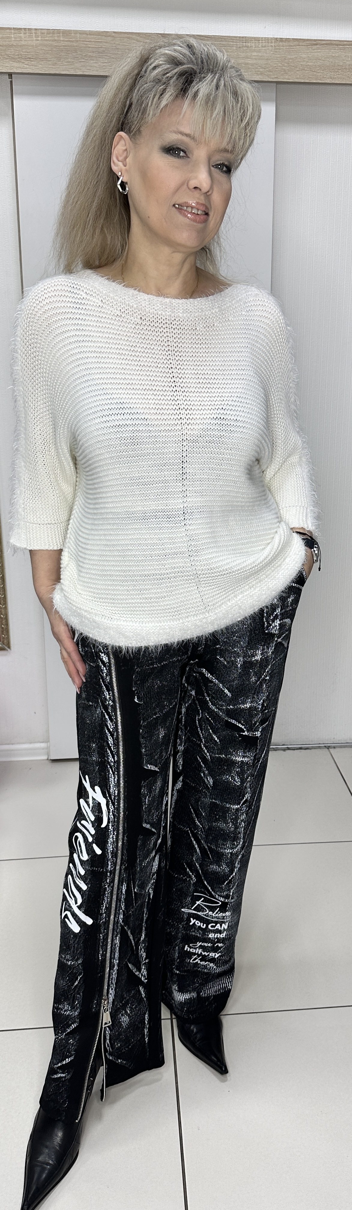Вы можете купить шикарные черно-белые брюки-палаццо с молнией модель 1509 в магазинах У Стаса. Брюки 1509: описание, фото, состав, производитель.