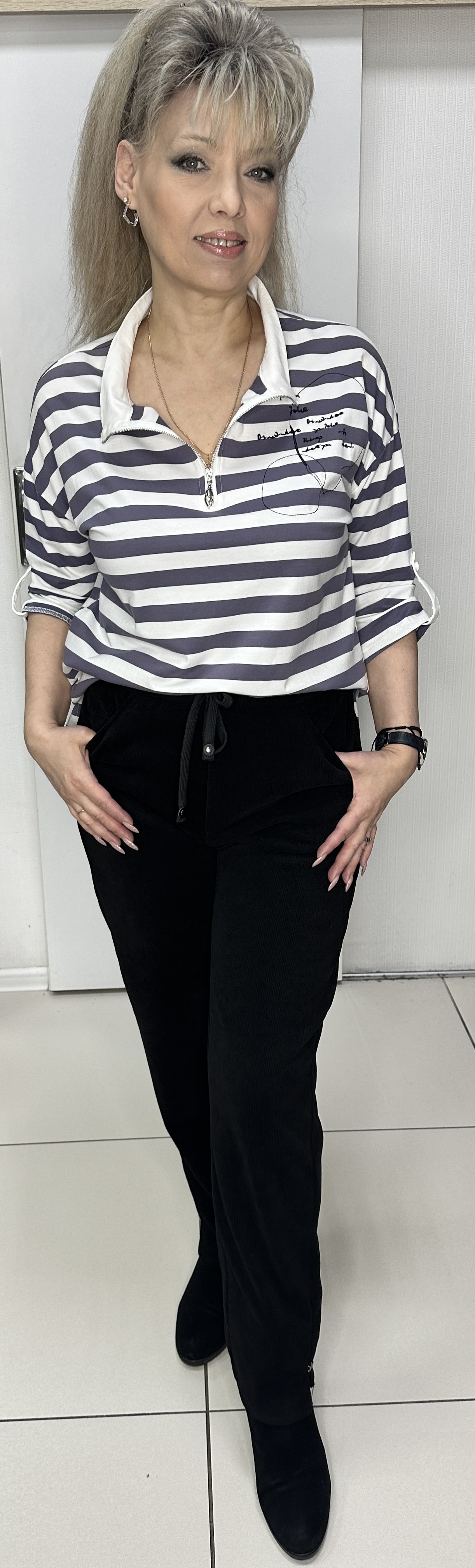 Вы можете купить черные брюки из микро вельвета модель 896 в магазинах «У Стаса». Брюки 896: описание, фото, состав, размеры