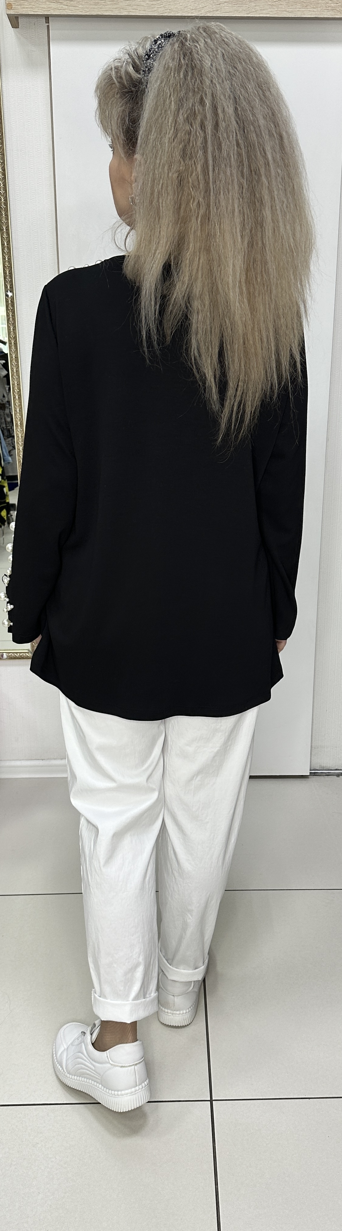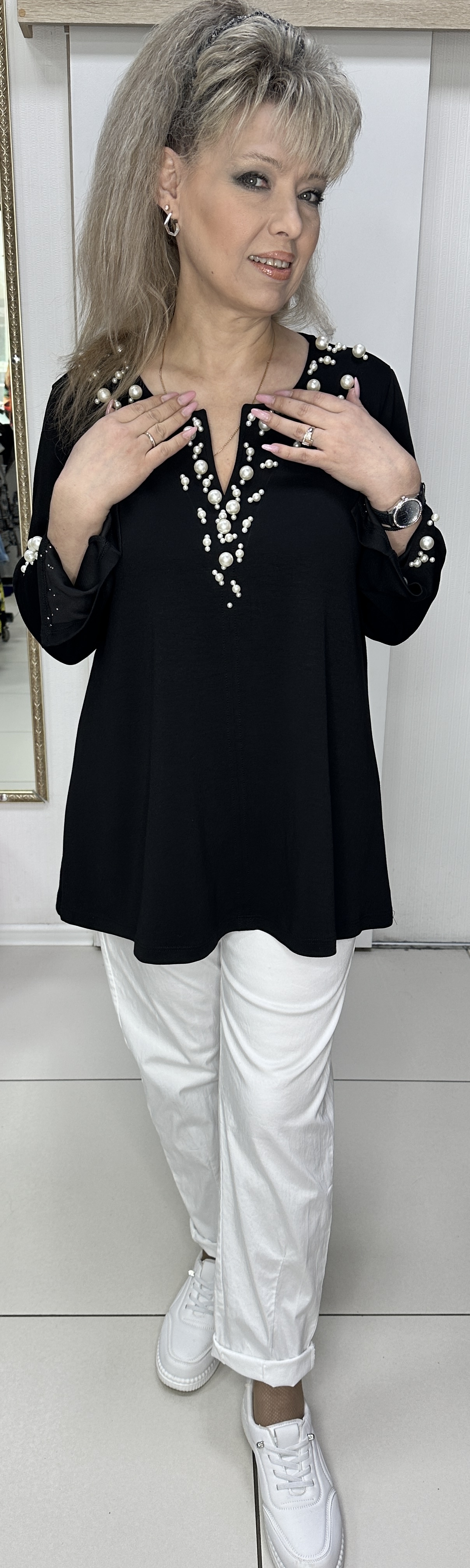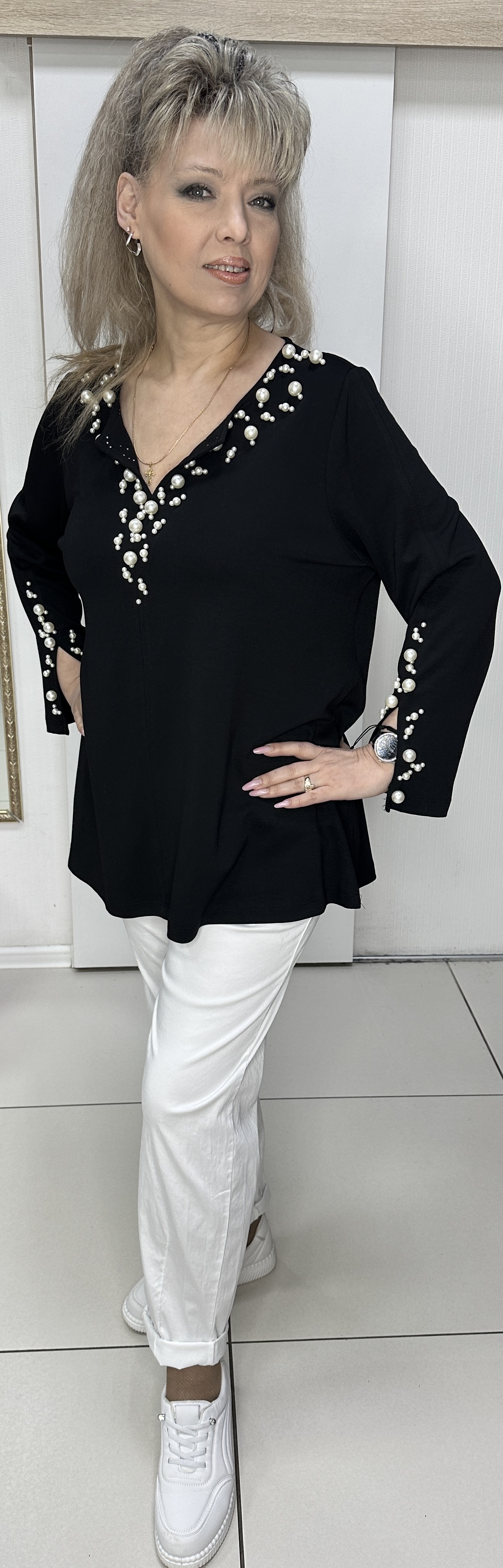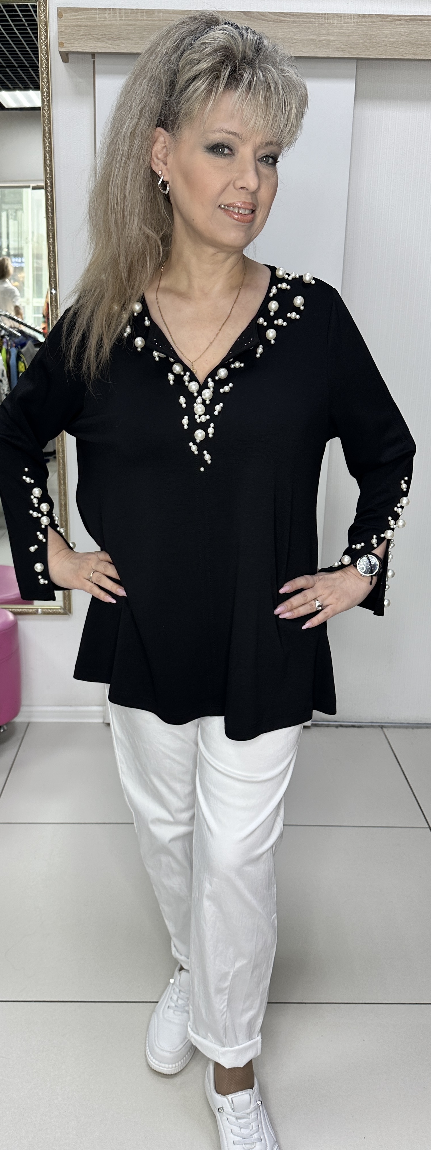 Вы можете купить красивый черный блузон/тунику с белыми разновеликими жемчужинами модель 9140 в магазине У Стаса, Блузон 9140: фото, описание..