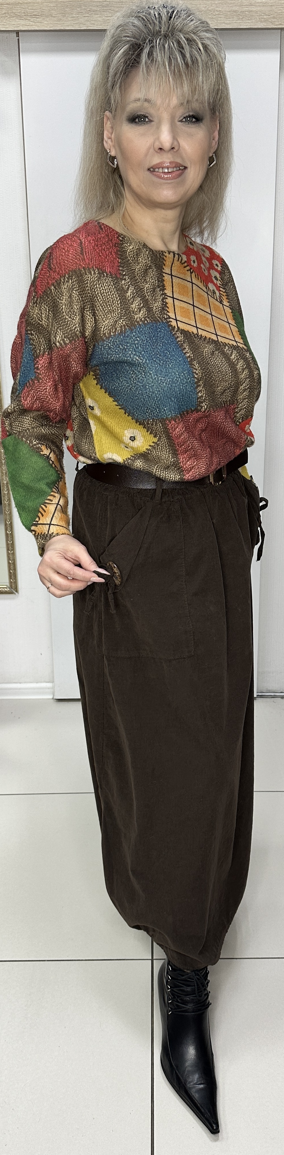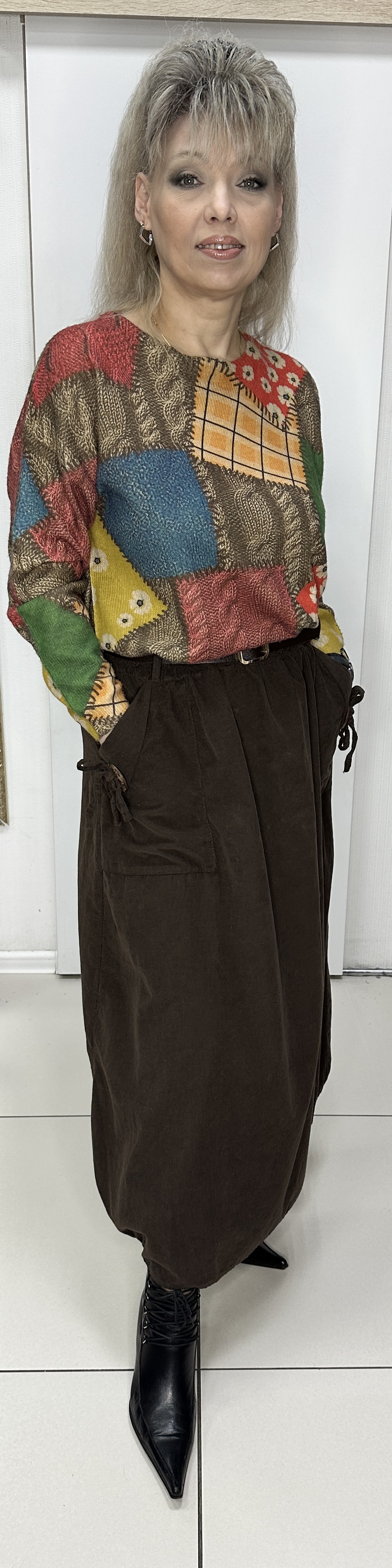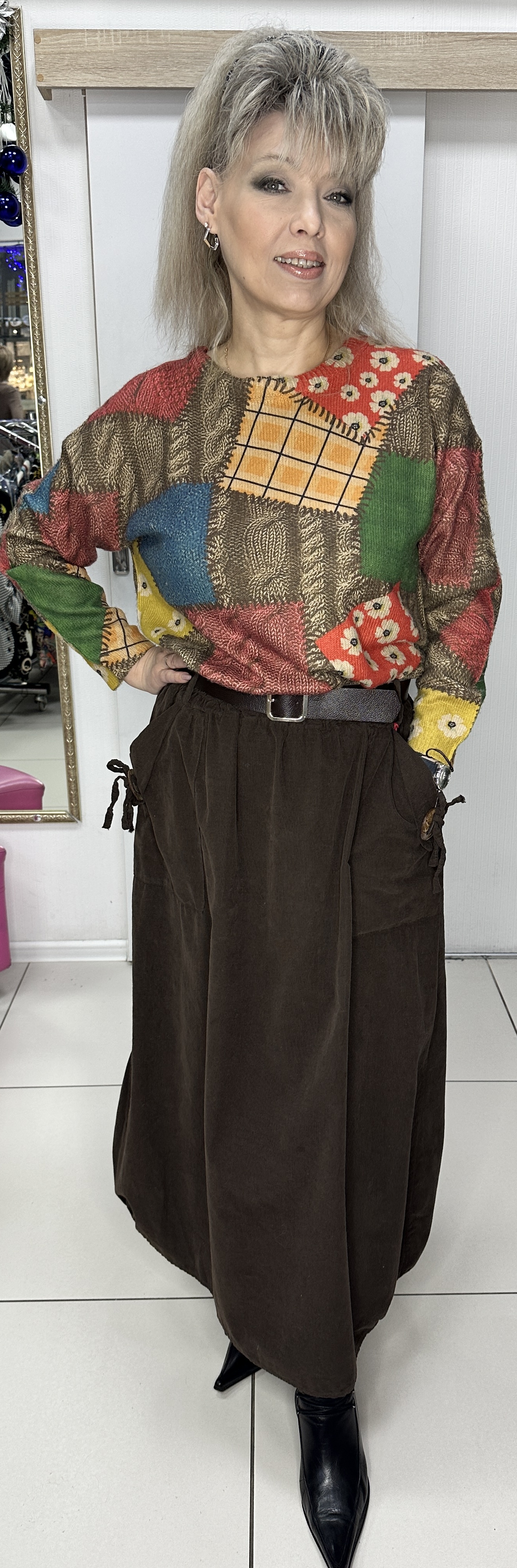Длинная юбка из микро вельвета с кармашками модель 3213 на каждый прохладный день. Юбка на мягком широком поясе-резинке + ремень, 2 кармана с пуговками и вязками по низу есть резинка. Прекрасный вариант теплой одежды для осенне-зимнего сезона. В наличии: капучино и шоколадный цвета.