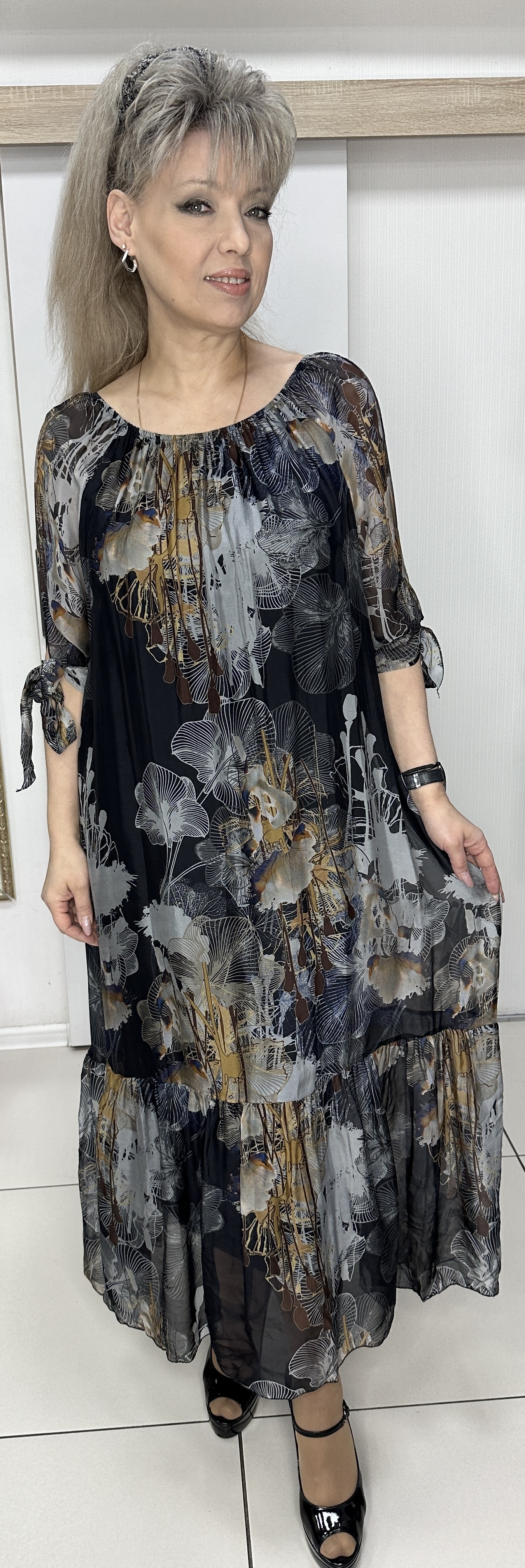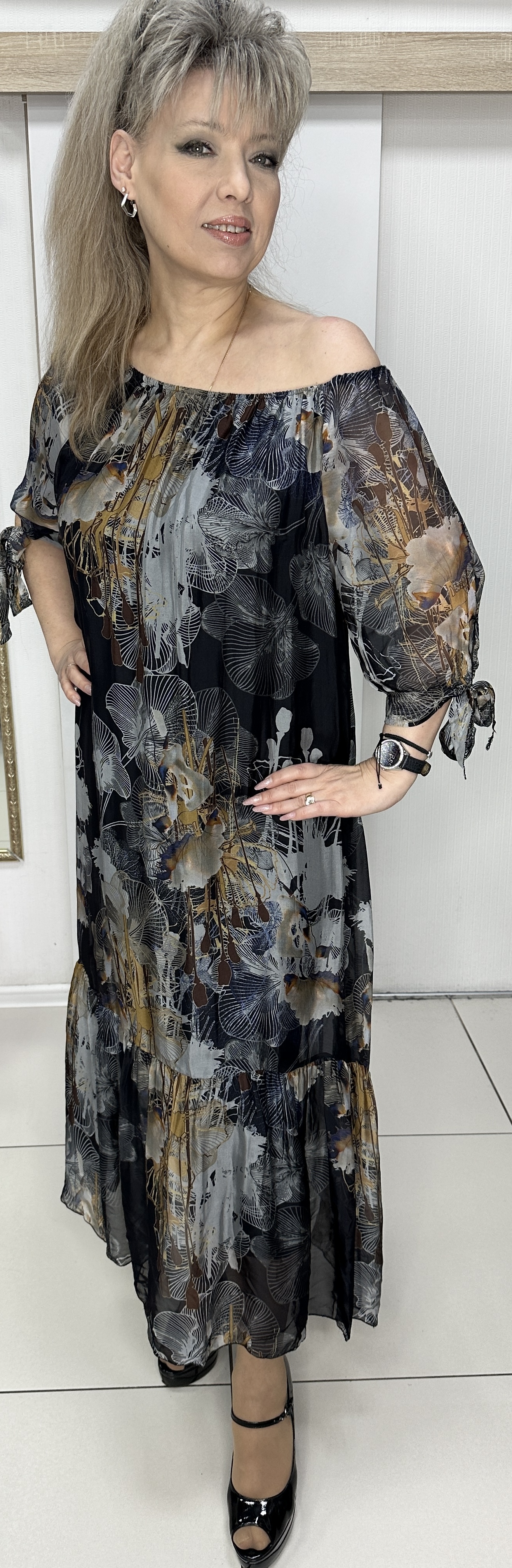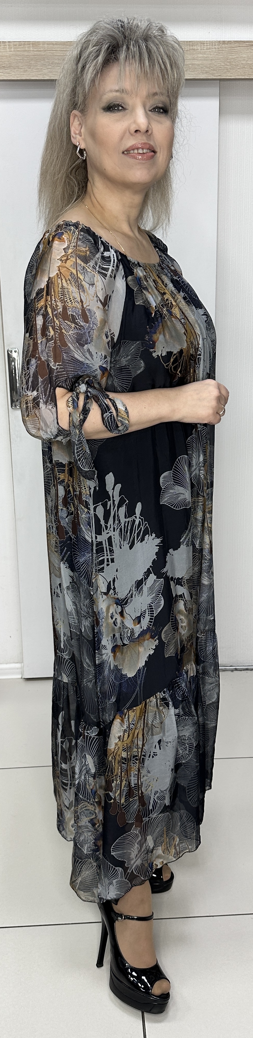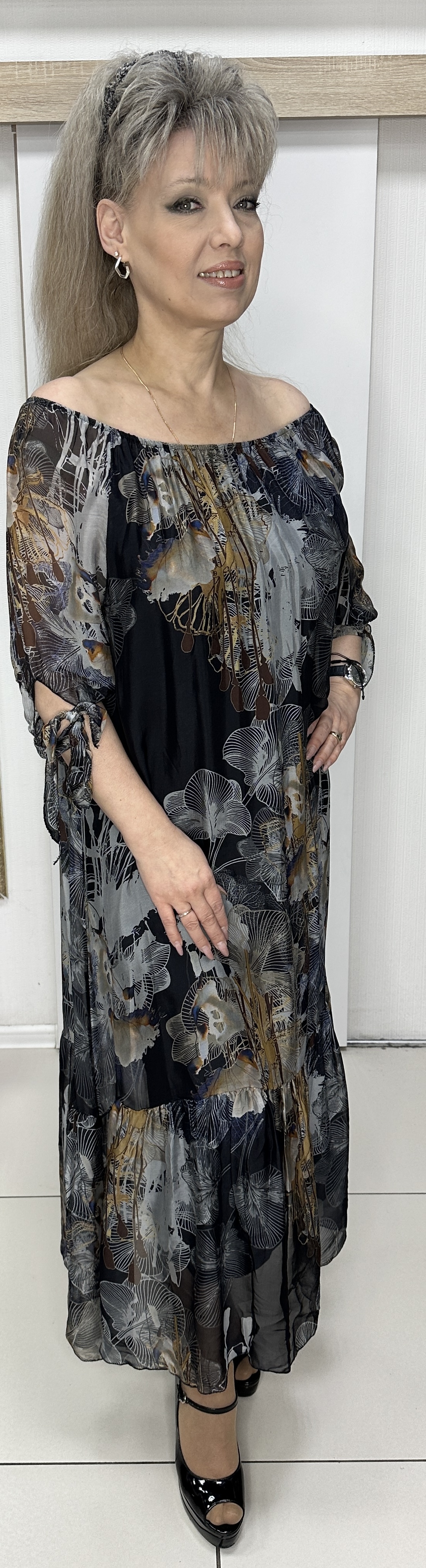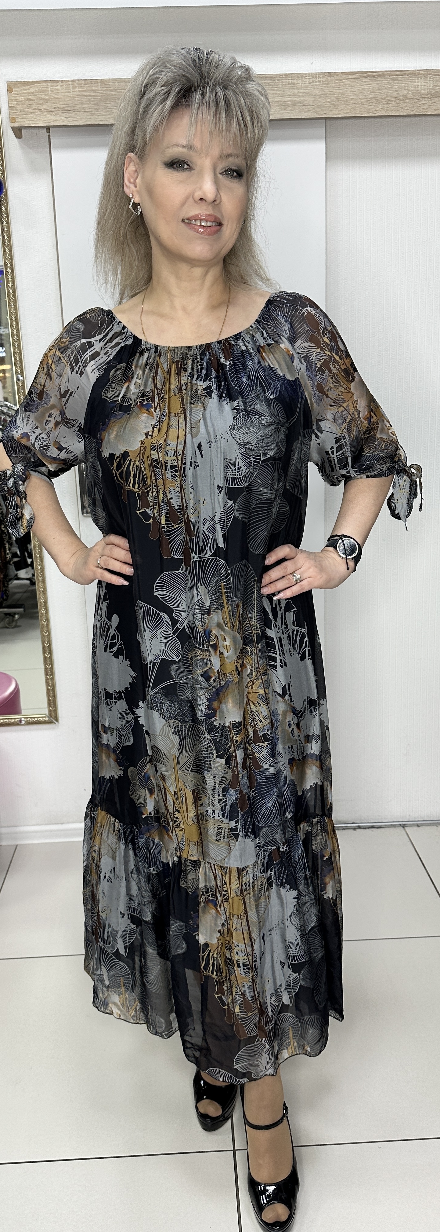 Сама нежность, само очарование это двойное платье. Длинное цветное платье с рюшей по низу и шифоновыми рукавами, модель 6099. В этой модели Вы не будите без внимания. Изюминка: у платья зона декольте на резинке, что мгновенно превращает его в вечерний наряд. Визуально делает свою обладательницу очень желанной, эффектной и празднично одетой. Спешите порадовать себя!