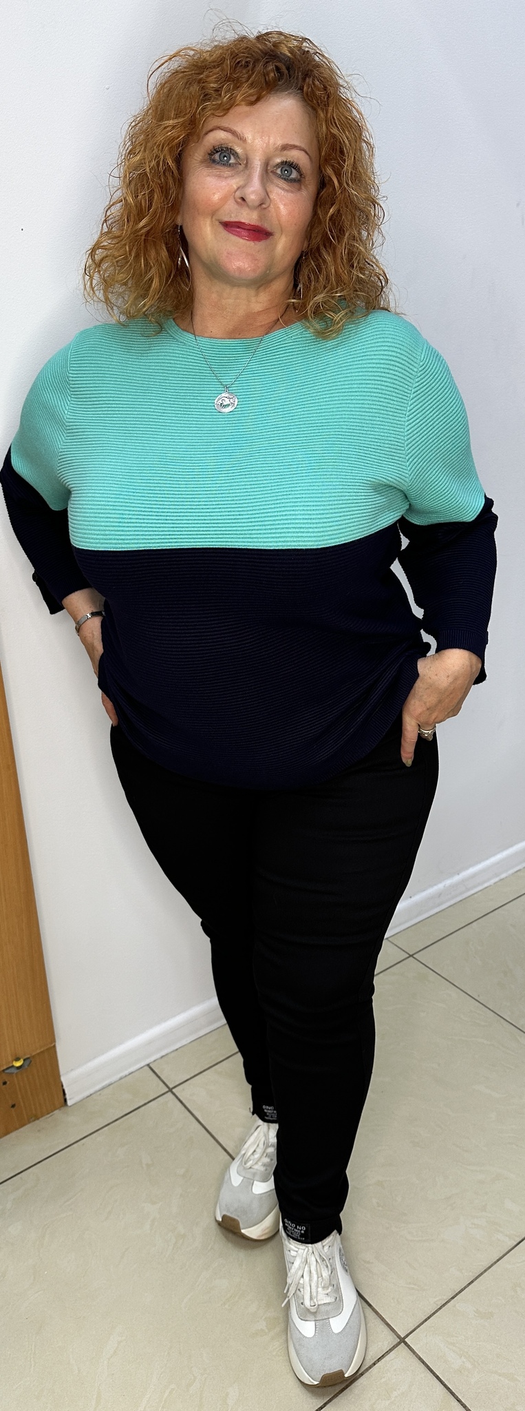 Тонкий и нарядный двухцветный джемпер модель 6088, который должна иметь каждая модница! Круглый вырез, длинный рукав, контрастный бирюзовый на верху и темно-синий внизу. Изюминка: сочетание двух цветов и изделие в рубчик выполнено. Отличный вариант одежды для прохладного осенне-зимнего сезона. В наличии: верх бирюзовый, розовый, бирюзовый и темно-синий низ.