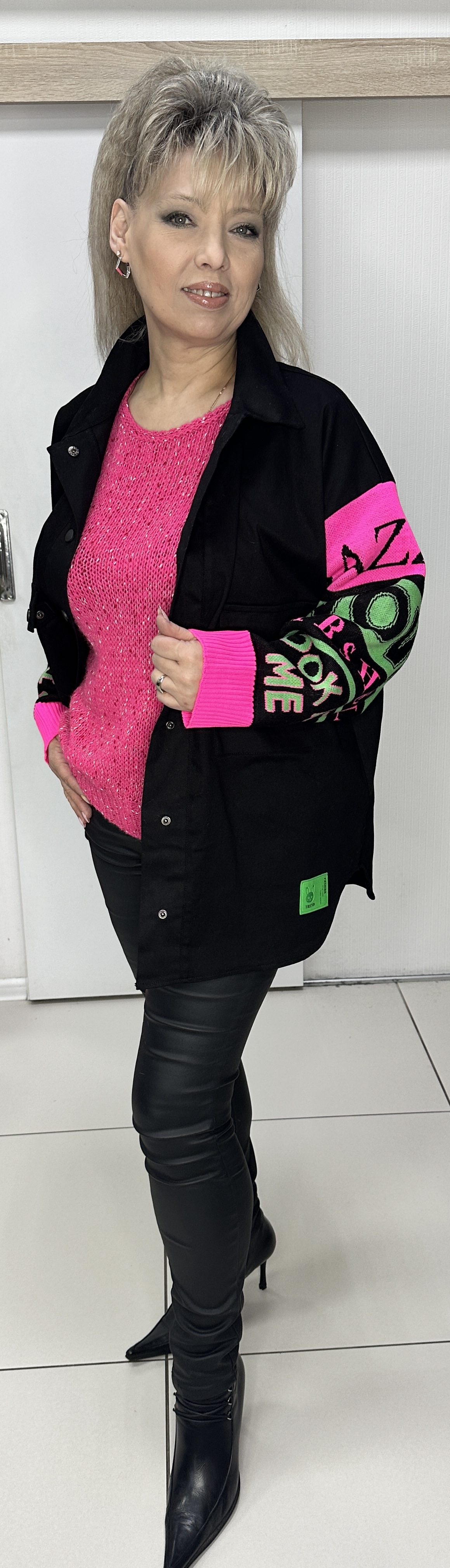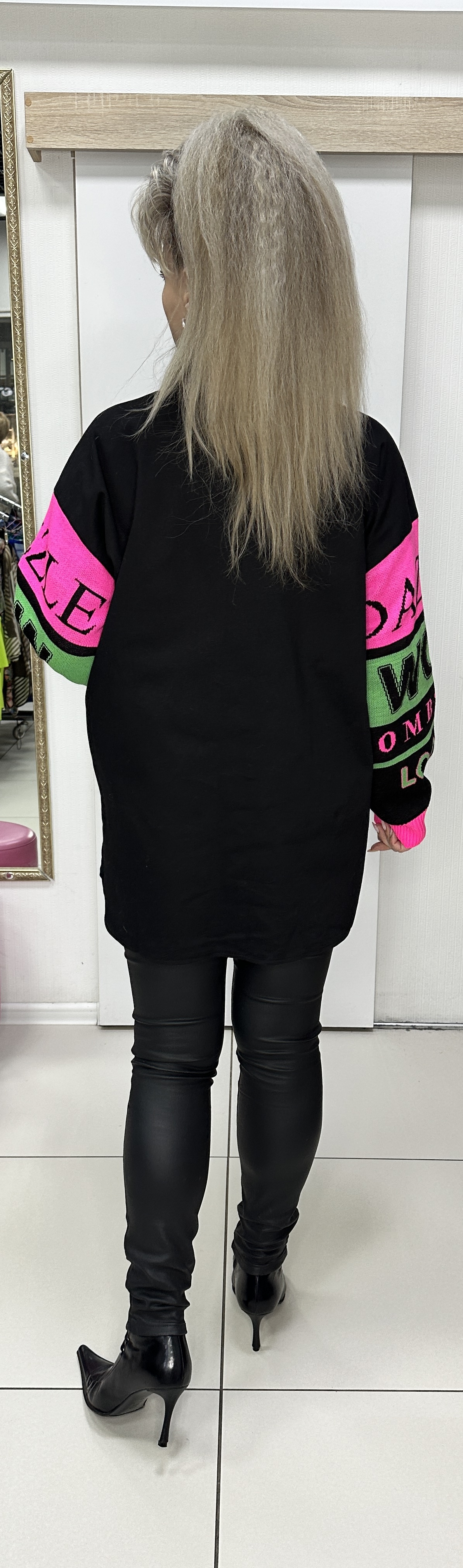 Черный, джинсовый жакет-кардиган будет вам очень нужен для окончательного создания стильного образа. Удлиненный джинсовый жакет из хлопка модель 3988 на каждый день. Джинсовая ткань, скругленные бока, накладные карманы с клапанами и трикотажные цветные рукава - делает эту модель стильной и молодежной. Это изделие хорошо сочетается с любым низом. Прекрасный вариант повседневной весенне-летней одежды.