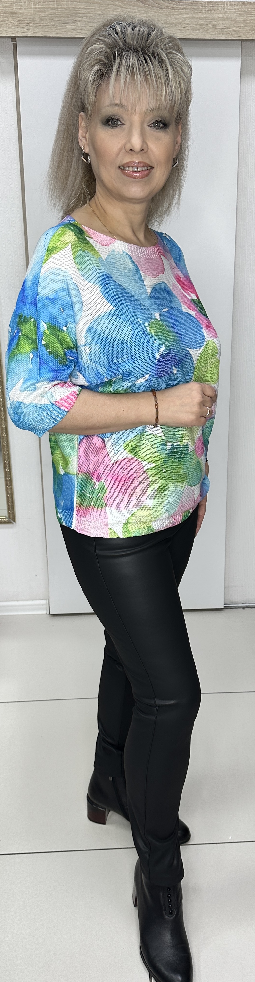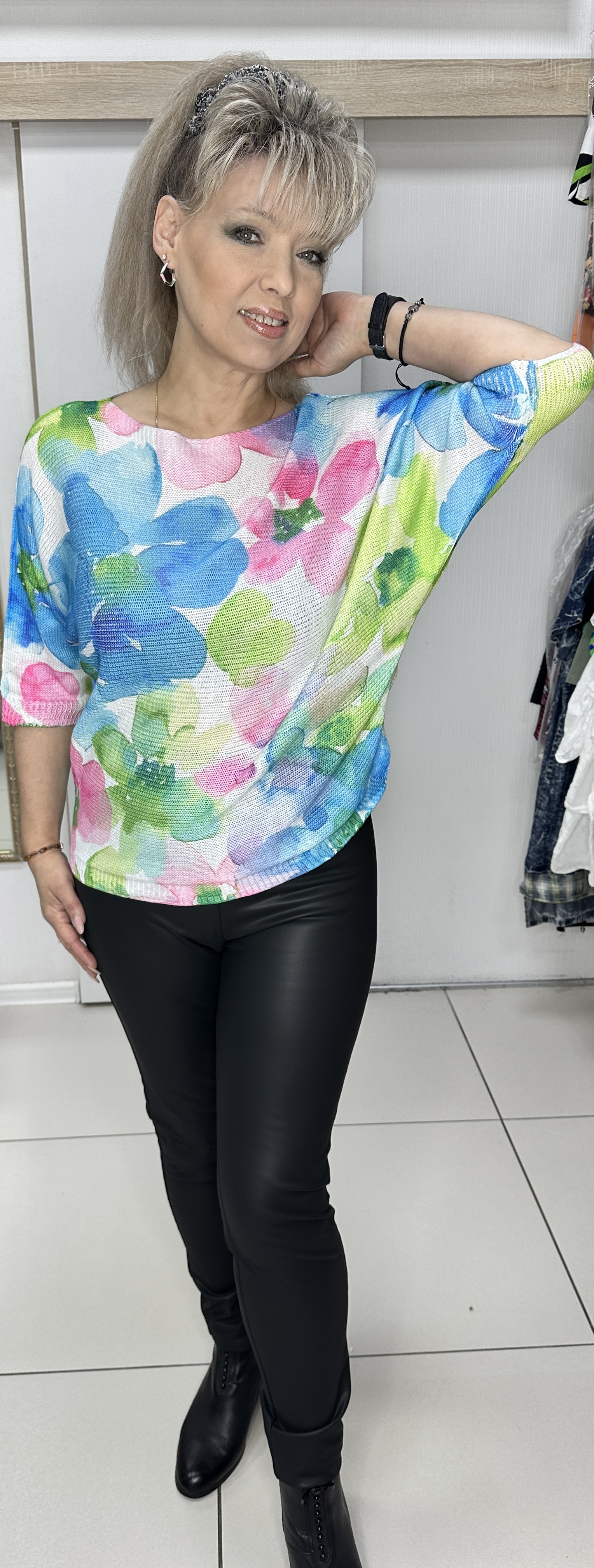 Яркий и стильный итальянский джемпер-блузон модель 9083 сделает привлекательной любую девушку(женщину). К низу фасон заужен "летучая мышь". Изображение может быть разным, мы показали всего лишь один из нашего ассортимента. Яркий джемпер-блузон для любых праздничных мероприятий. В ассортименте разный рисунок.