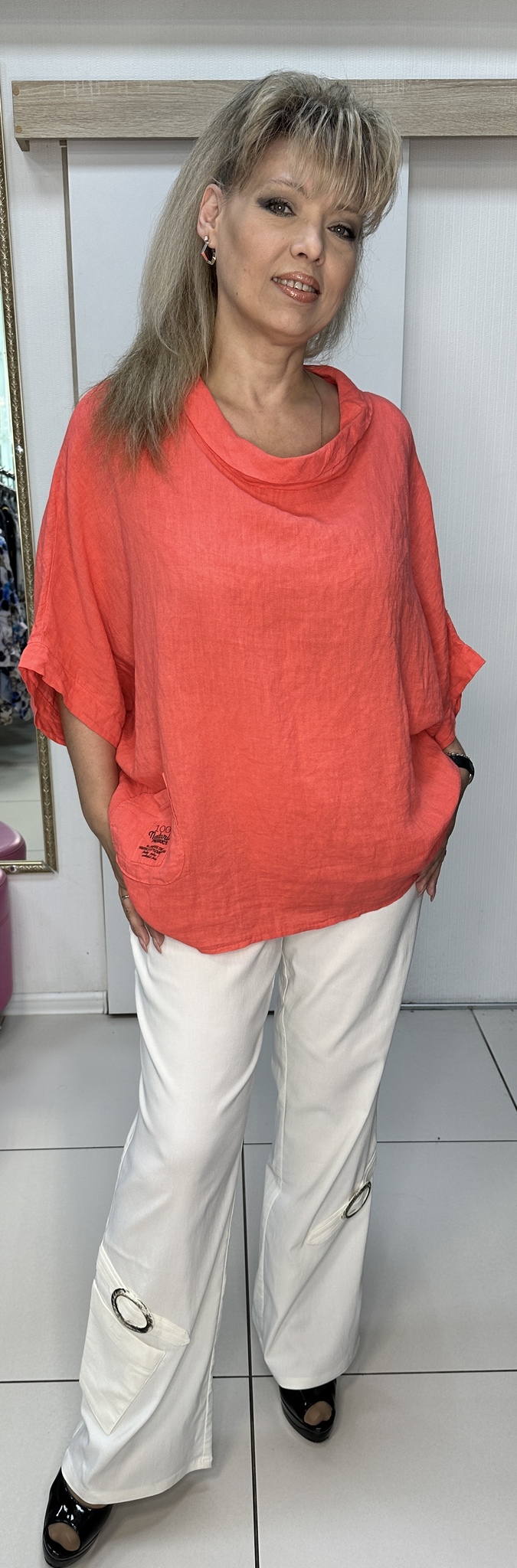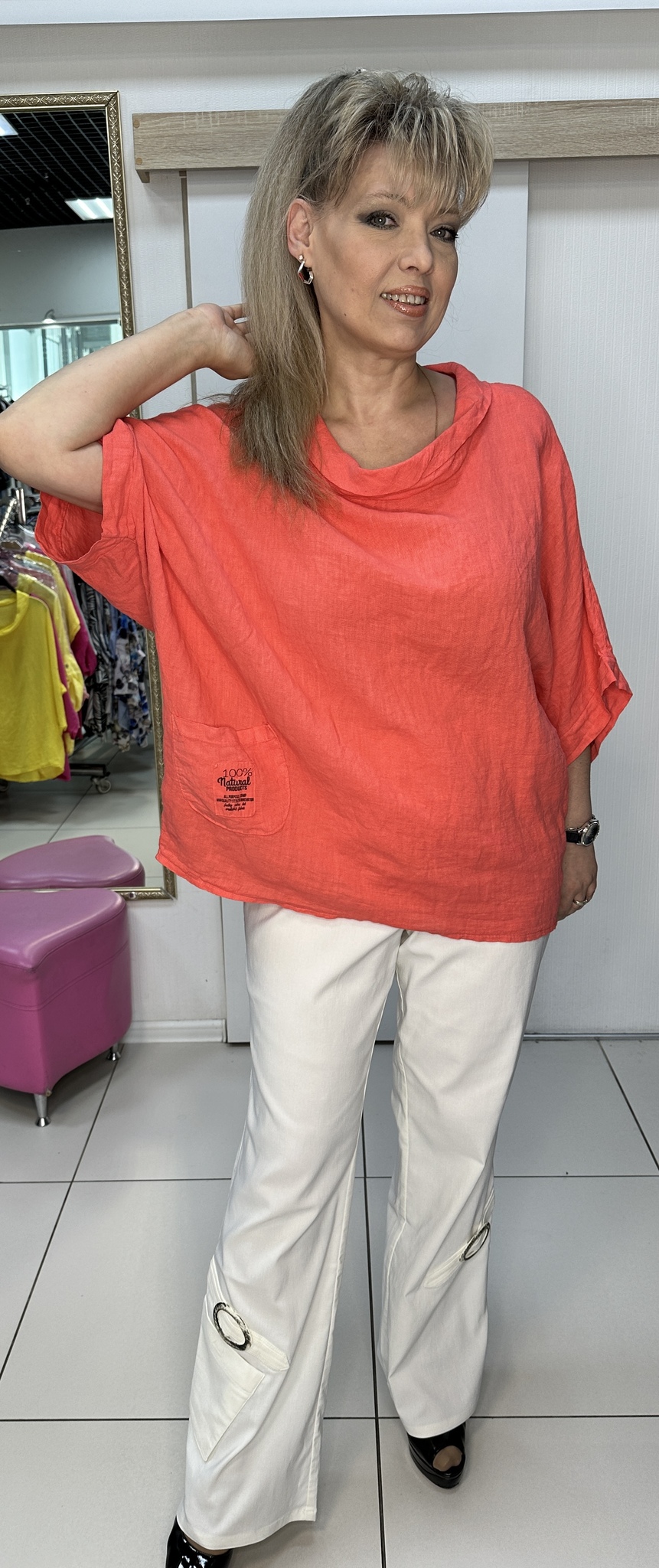 Белые немецкие брюки модель 4254, прекрасный вариант для повседневной летней одежды. Посадка высокая по талии круговая резинка, что актуально для фигур с крутыми бедрами и узкой талией. Штанины к низу имеют небольшой клеш и принт из пряжки. Настоящее немецкое качество. В наличии большие размеры.
