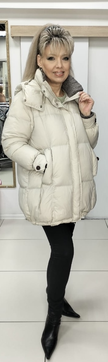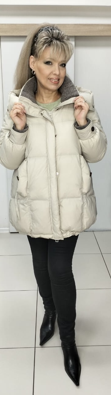 Какой модный и красивый пуховик! Теплая и легкая курточка-пуховик в молочном цвете модель 6917 на молнии с кнопками и с капюшоном. Пуховичок стеганный и фасон у него очень оригинальный. Изюминка: трикотажный воротник и кармашки на потайной молнии. Это довольно востребованный фасон, всегда хочется за небольшие деньги иметь стильный фасон. Современные материалы обуславливают эстетичный вид и долговечность одежды.