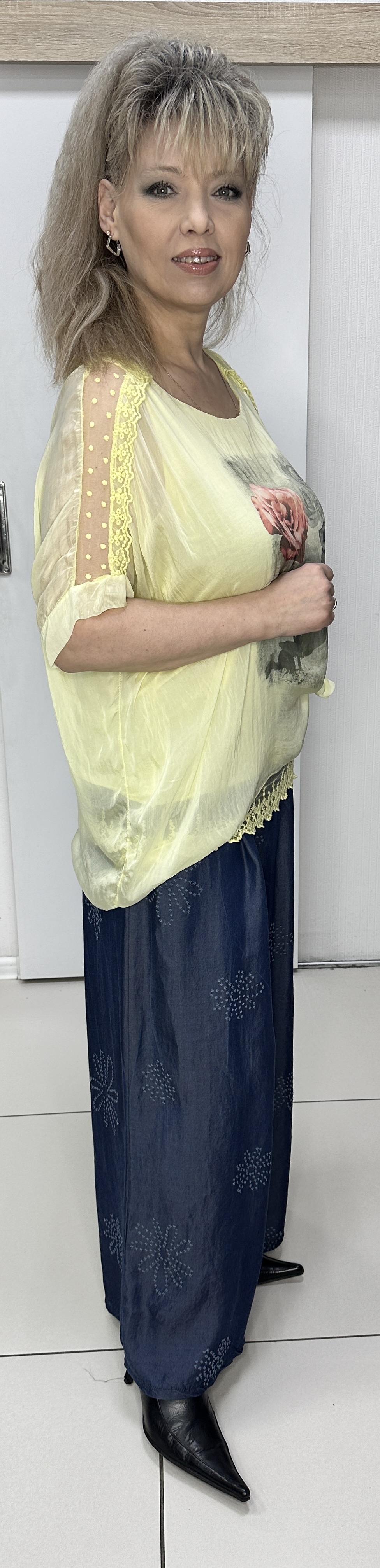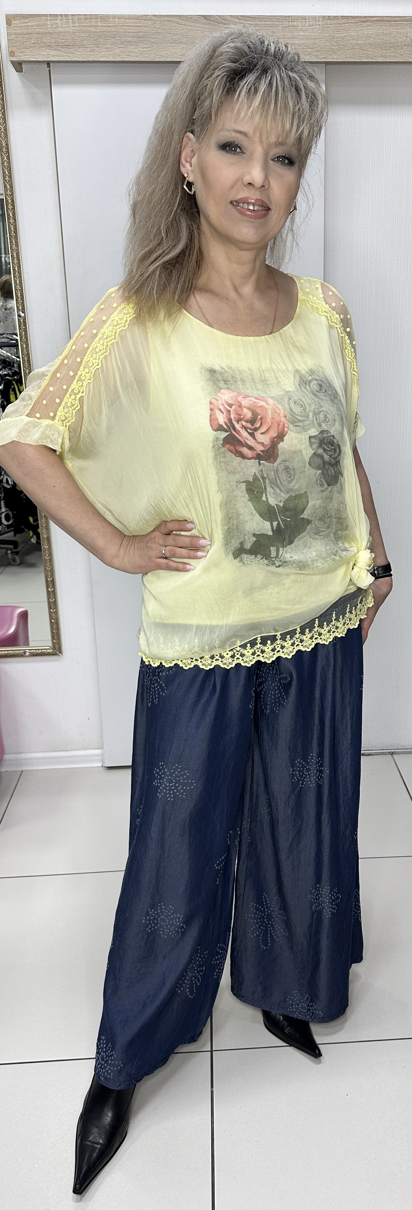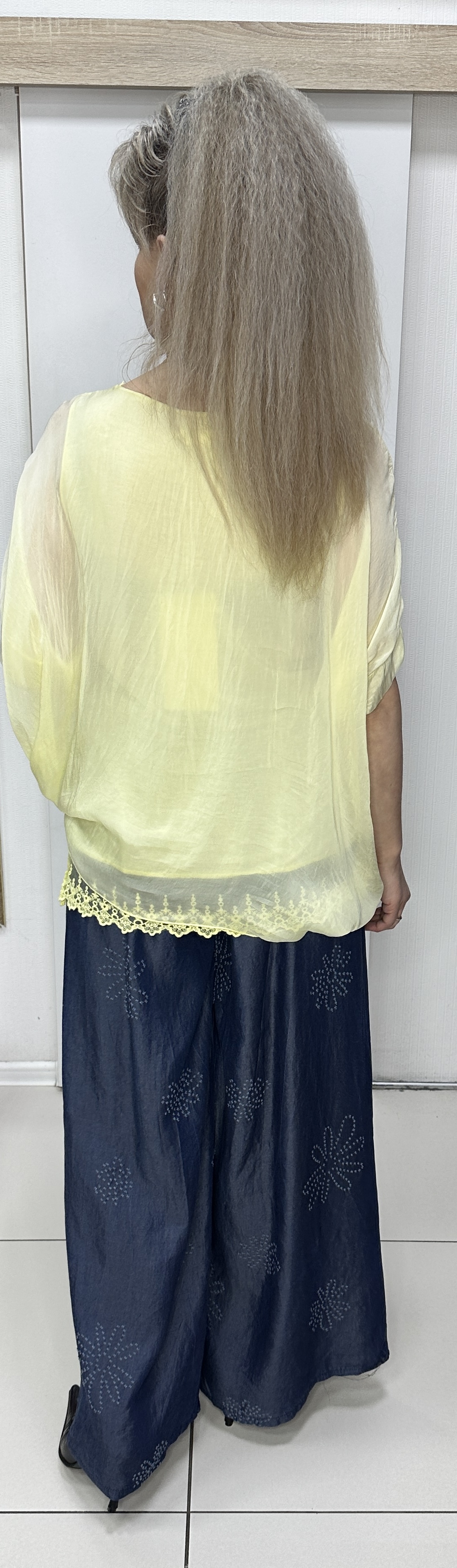 И красота и воздушность в этой модели! Желтый итальянский блузон-двойка из шелка модель 6310 подойдет на любое праздничное мероприятие. Прекрасный вариант летний одежды для ценительниц хорошего соотношения цены и качества. Этот блузон отлично подойдет как к брюкам, так и к юбке, подчеркнет то, что нужно и скроет лишнее. Изюминка - кружева по плечам, низу и "воздушность" модели с разной длиной. Модель популярна у полных женщин. В наличии: белый, желтый и голубой цвета.