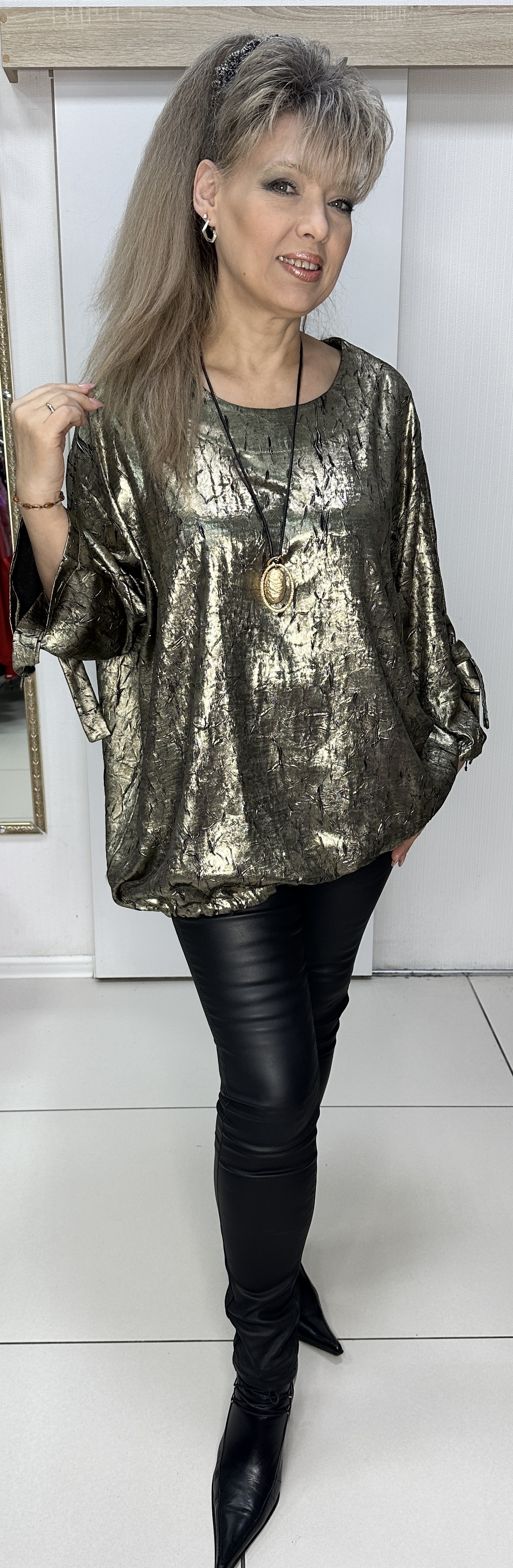 Вы можете купить нарядный под золото блузон-тунику с подвеской модель 3137 в магазинах У Стаса по доступной цене. Блузон-туника 3137: описание, фото, состав, производитель.