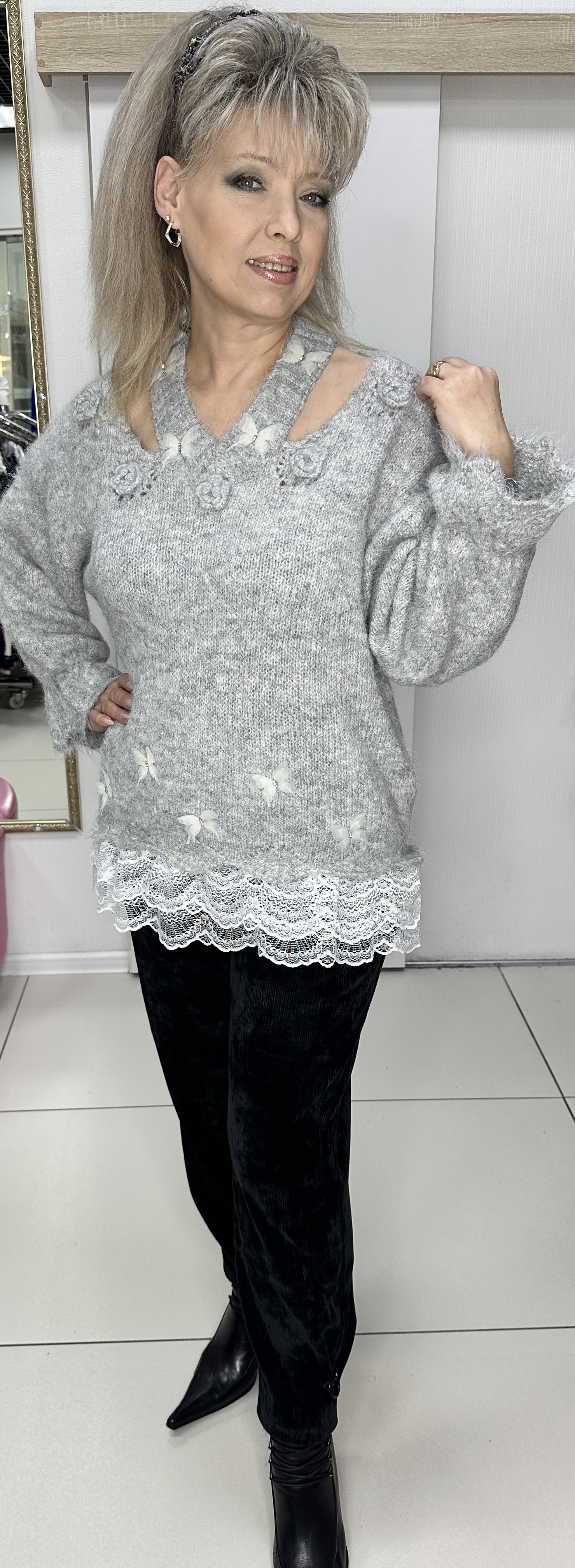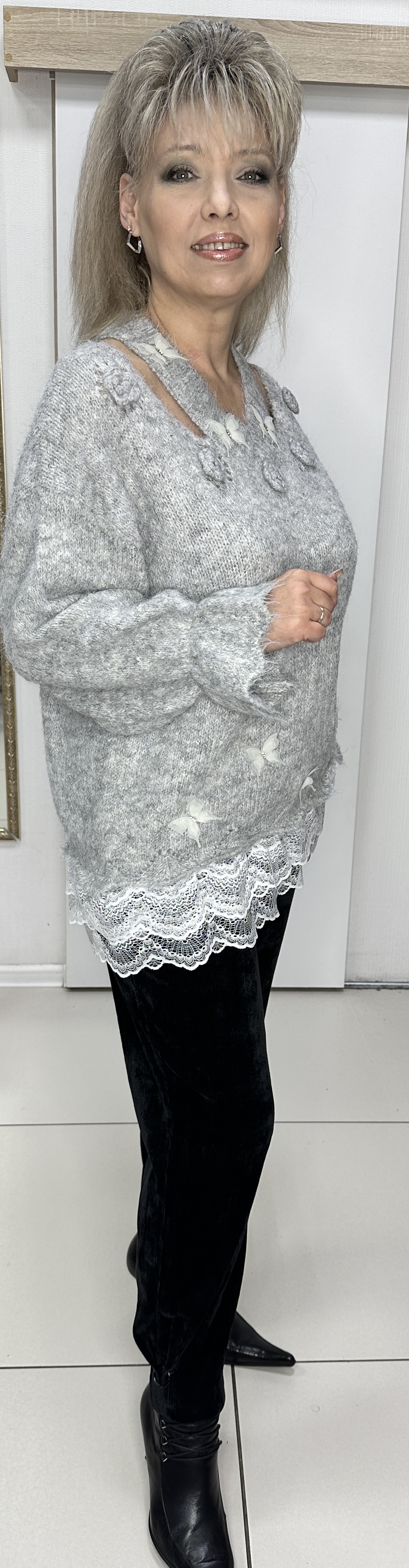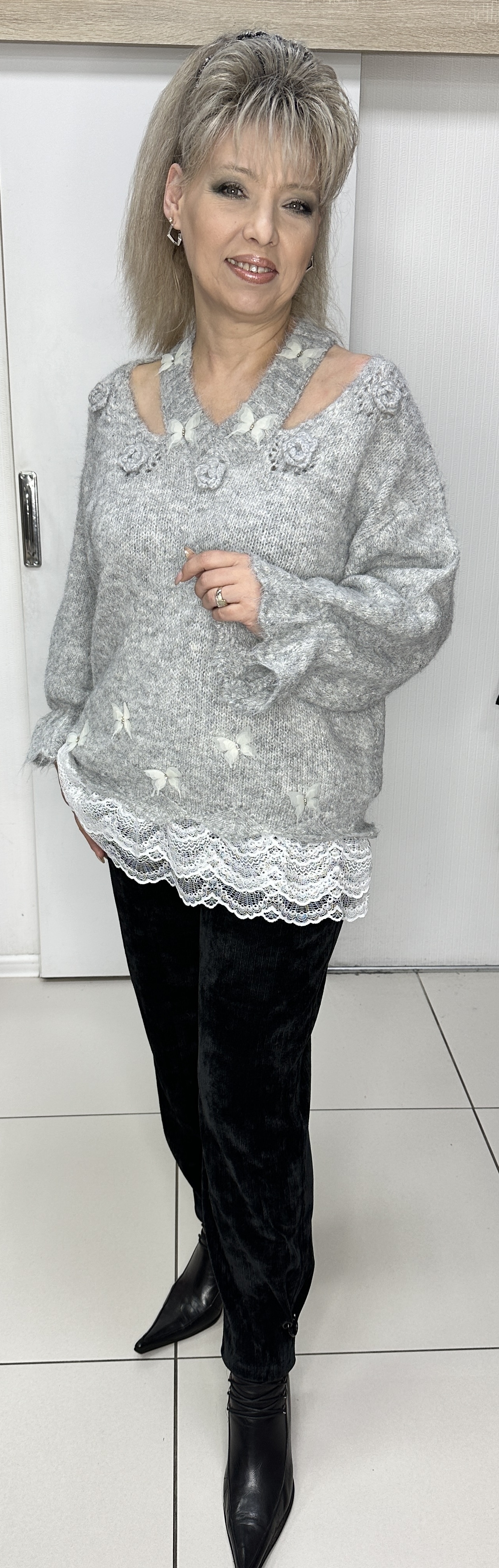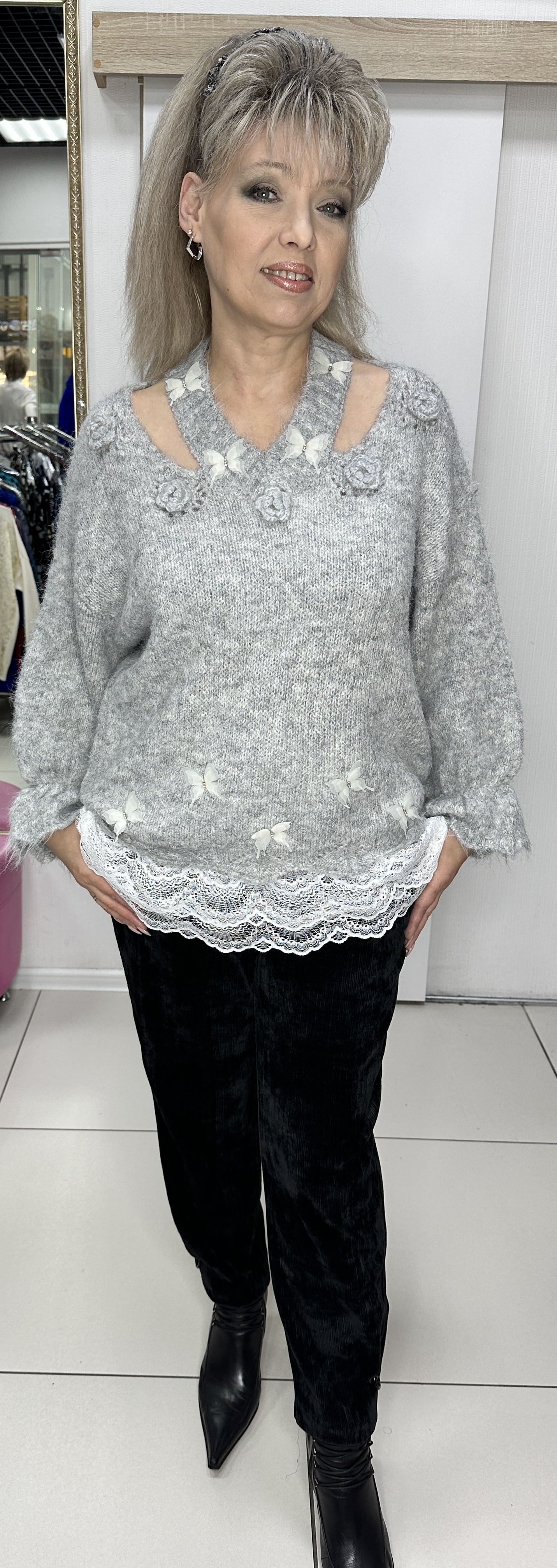 Нарядный, теплый и очень принтовый джемпер с шитьем и гипюром, пришитыми бабочками по лицевой стороне модель 252503, который должна иметь каждая модница! Благодаря эластичному материалу в этом джемпере вам будет всегда комфортно. Изюминка: вырезанные плечики и декольте. Рекомендуем стильным женщинам (девушкам) на любые мероприятия!