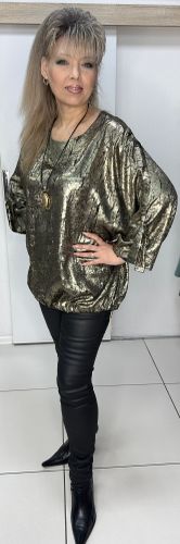 Нарядный комбинированный блузон для любого праздничного мероприятия! Лицевая сторона под эко-кожу ткань, а рукава и спина это трикотаж. Настроение и нарядность придает стразовый принт по V-образному вырезу и по плечам. А пикантные вырезы по рукавам- это вообще супер. Спешите сделать себя красивыми и любимыми!