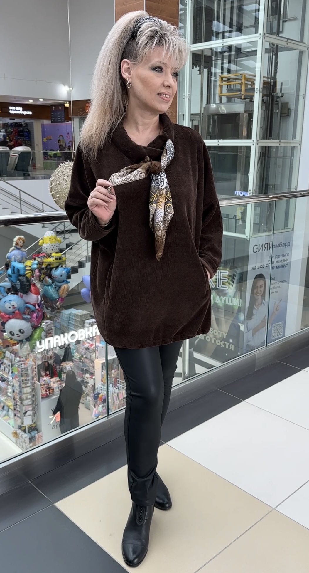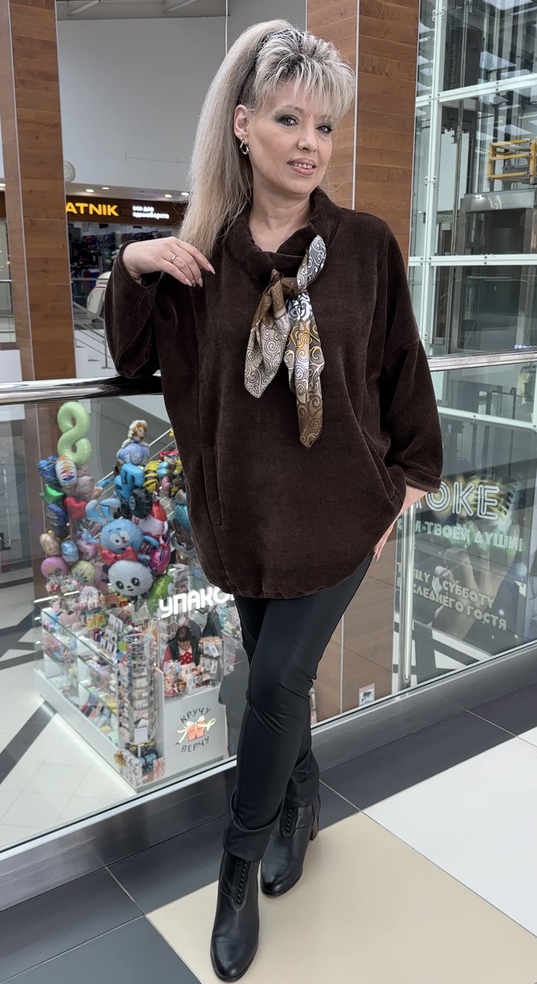 Вы можете купить шоколадного цвета тунику с галстуком модель 2978 в магазинах У Стаса по доступной цене Блузон-туника 2978: описание, фото, состав, производитель.