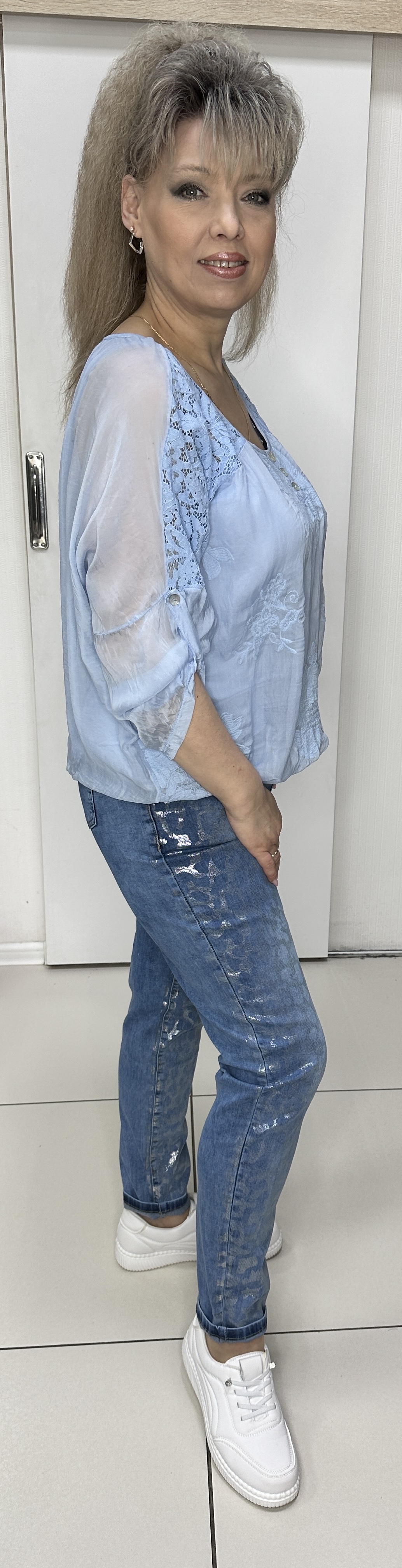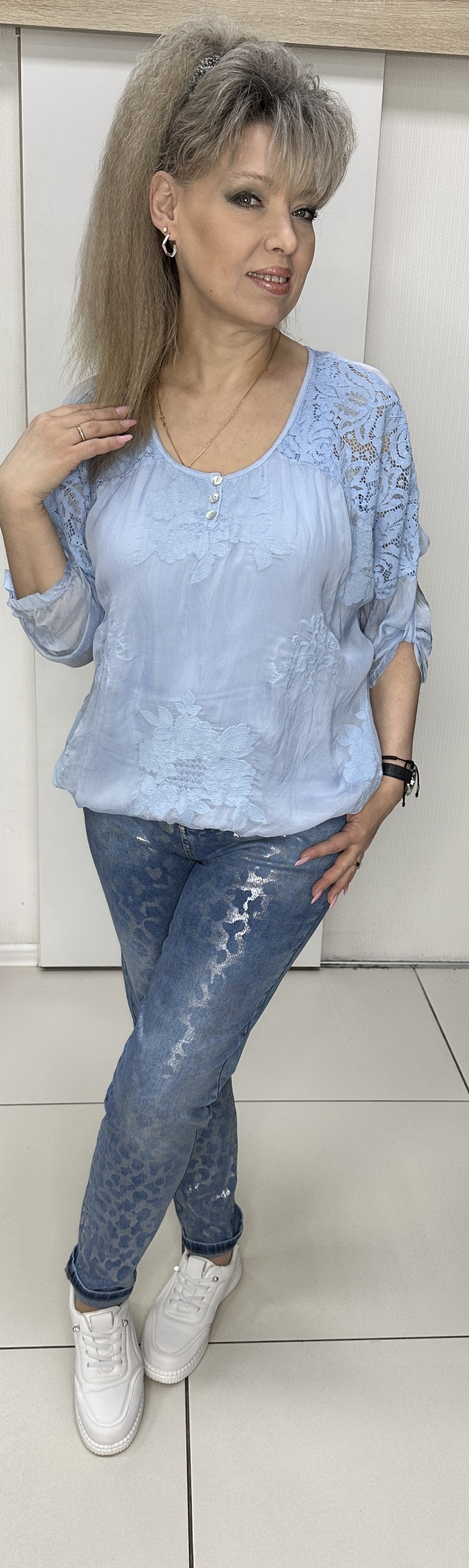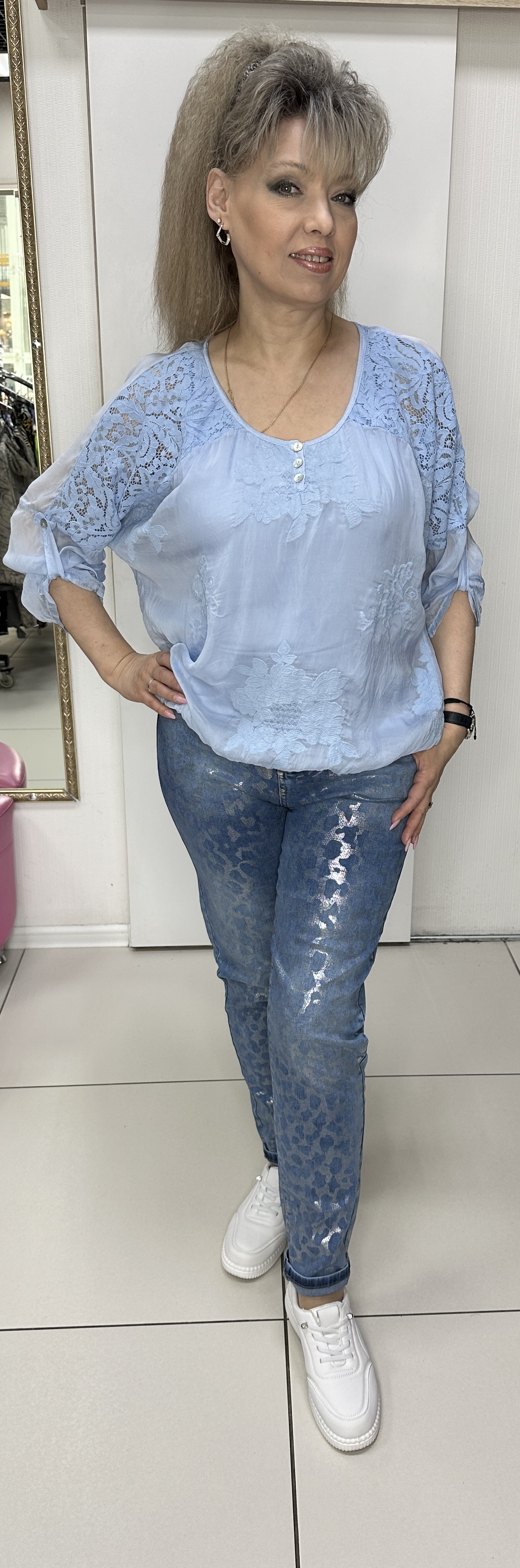 Вы можете купить синие джинсы с красивым блеском модель 12850 в магазинах «У Стаса». Джинсы зауженные 12850: описание, фото, состав, размеры