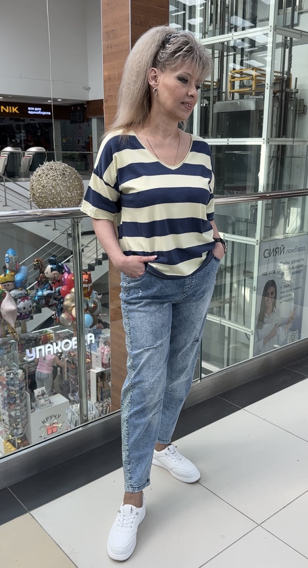 Вы можете купить синие джинсы со стразовыми лампасами модель 2213 в магазинах «У Стаса». Джинсы палаццо 2213: описание, фото, состав, размеры