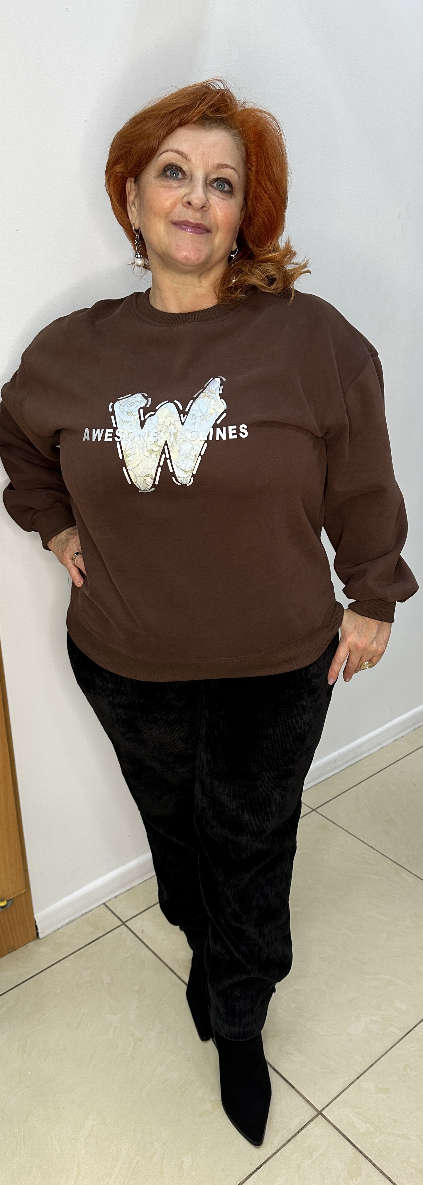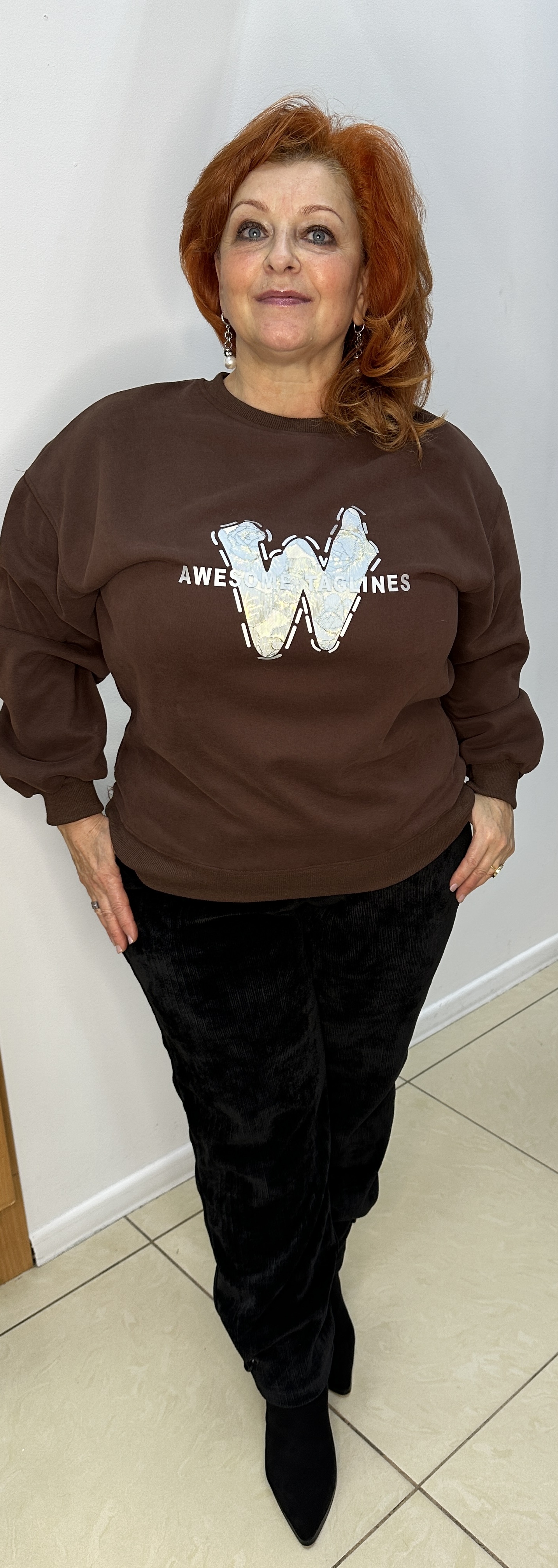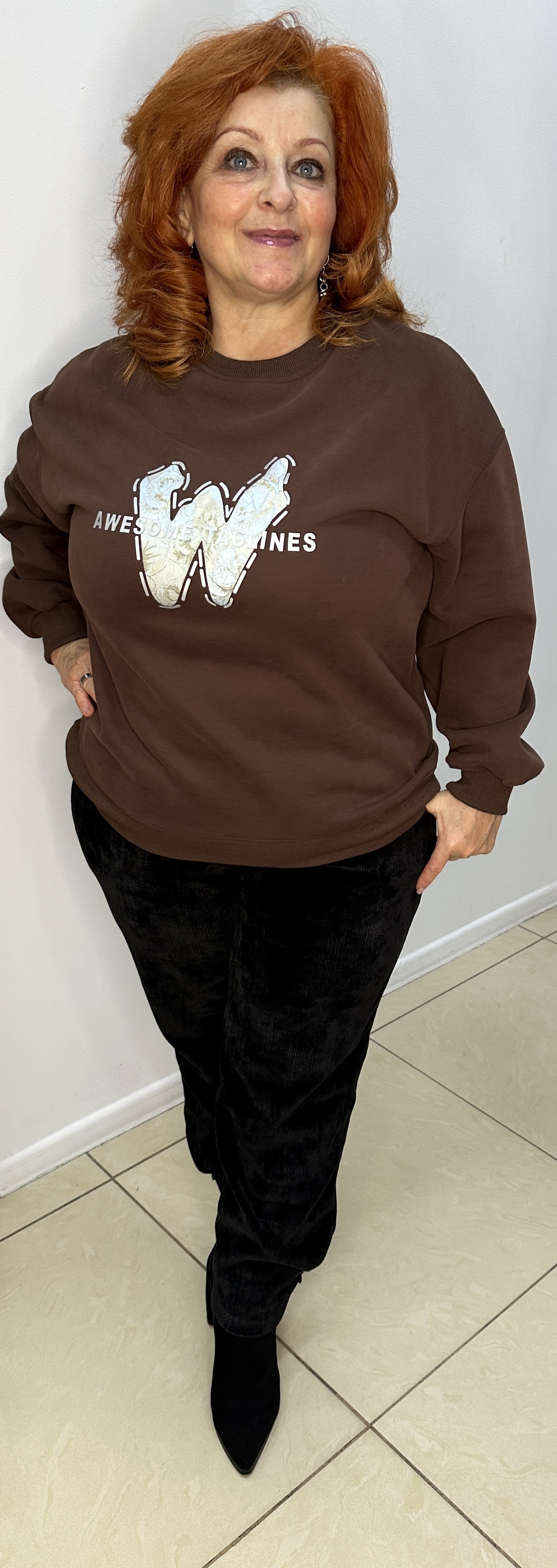 Какая классная толстовка-свитшот. Трендовый шоколадный цвет, толстовка со спущенными рукавами модель 6306 – достойная покупка в гардероб современной девушки (женщины). Изюминка: принт с буквенным изображением W и надписей с блеском. АКТУАЛОЧКА для корпоратива и веселых посиделок. В наличии: светло-серый и шоколадный цвета.