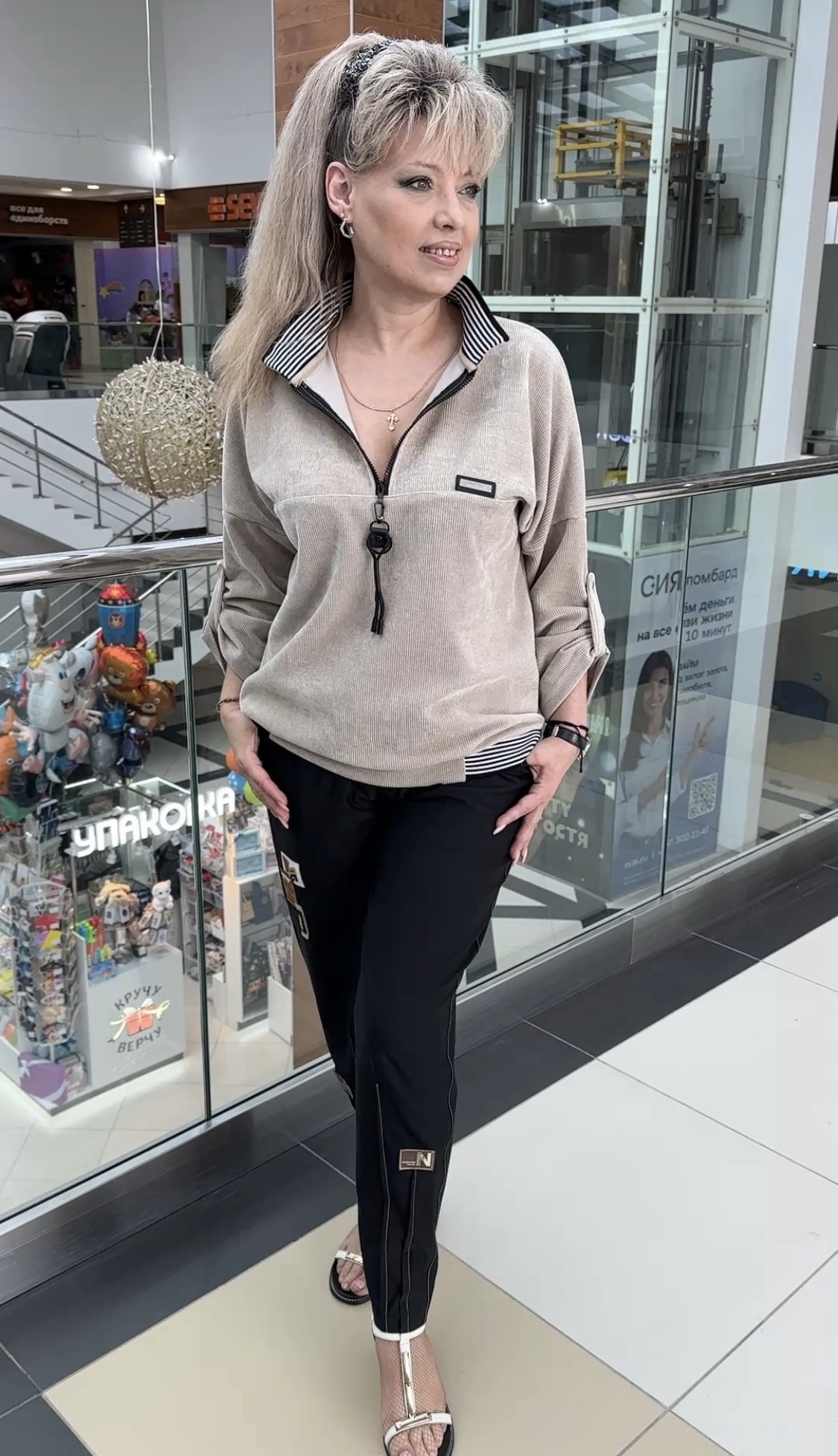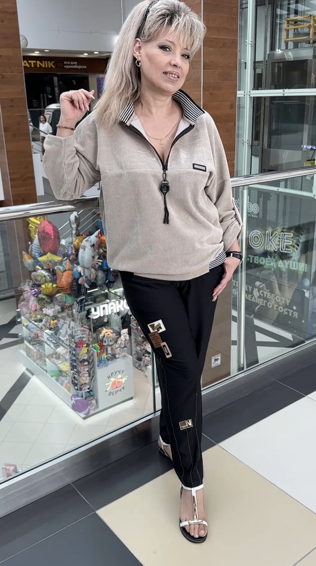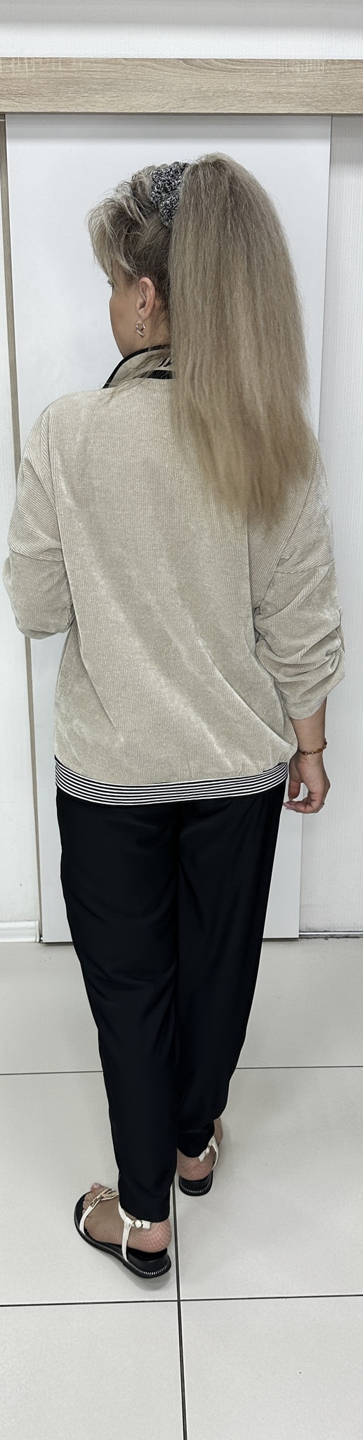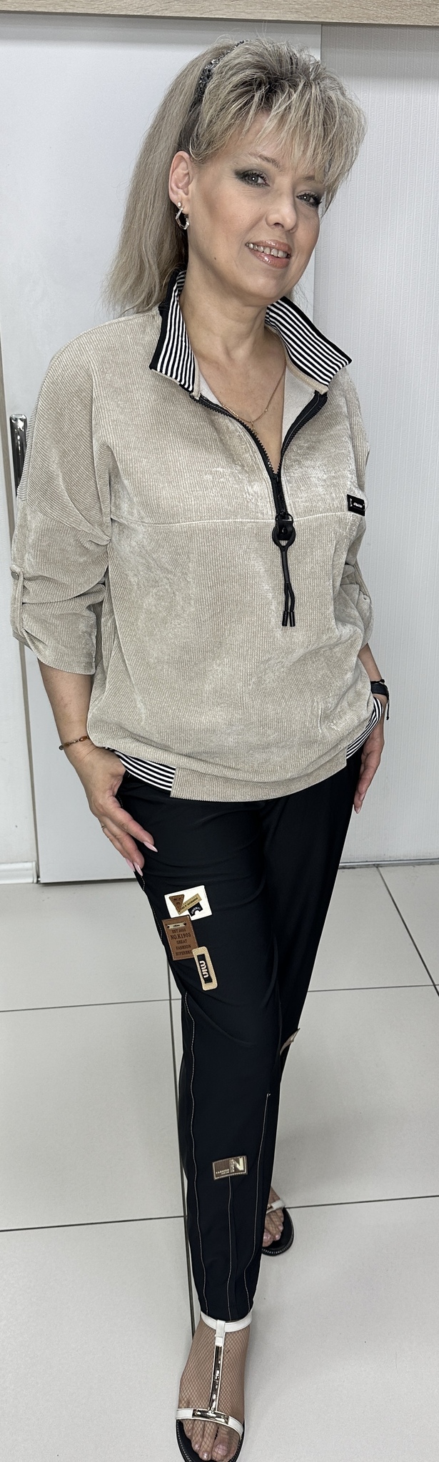 Одежда из микро-вельвета все больше становится нашей любимицей. Думаю не ошибусь, если предположу, что у каждой девушки(женщины) в гардеробе имеется несколько разных толстовок-свитшотов. Модный, бежевый с темной отделкой и поло застежкой по декольте, свитшот модель 5635 на каждый день. Очень приятный тактильно и визуально эффектный свитшот. Модель отлично смотрится с любым низом.