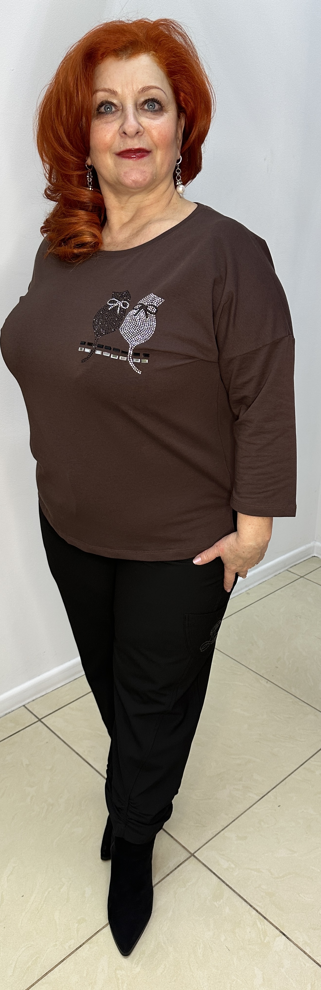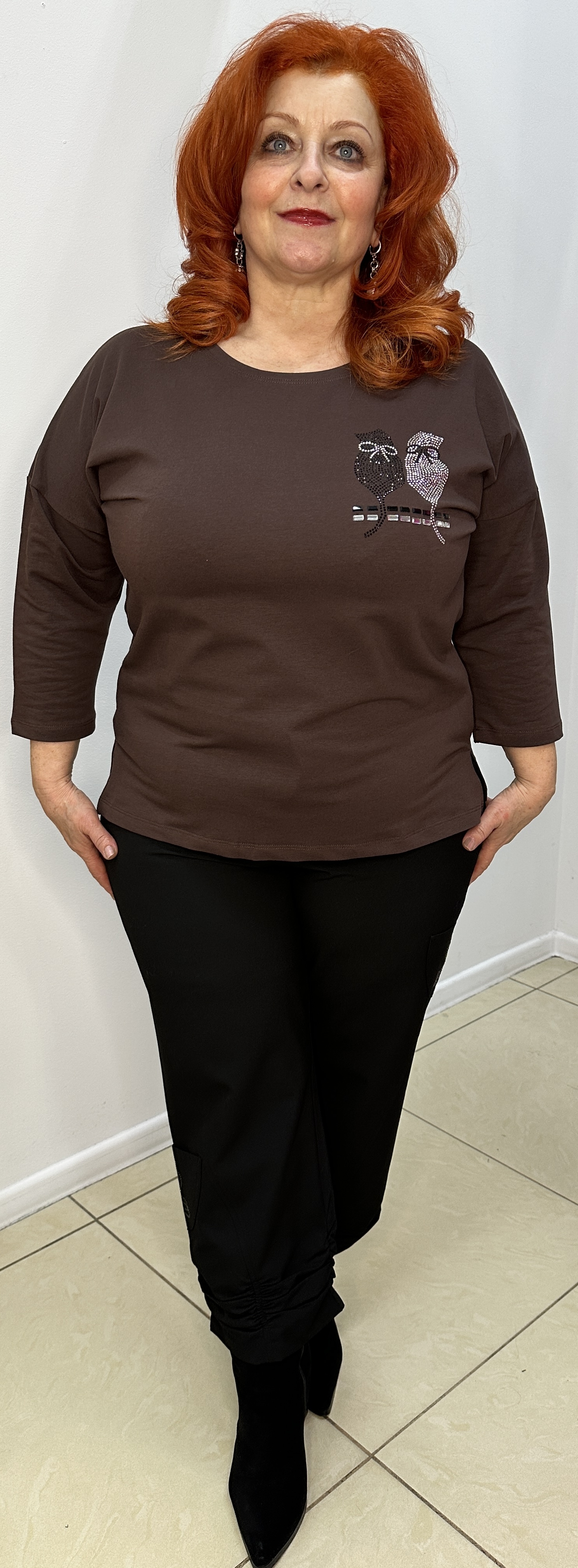 Модный цвет у этой толстовки. Просто и в тоже время стильно смотрится этот свитшот модель 70011 на каждый день. Изюминка: 2 стразовых котика на жердочке. Очень приятный тактильно и визуально эффектный свитшот. Модель отлично смотрится с любым низом.