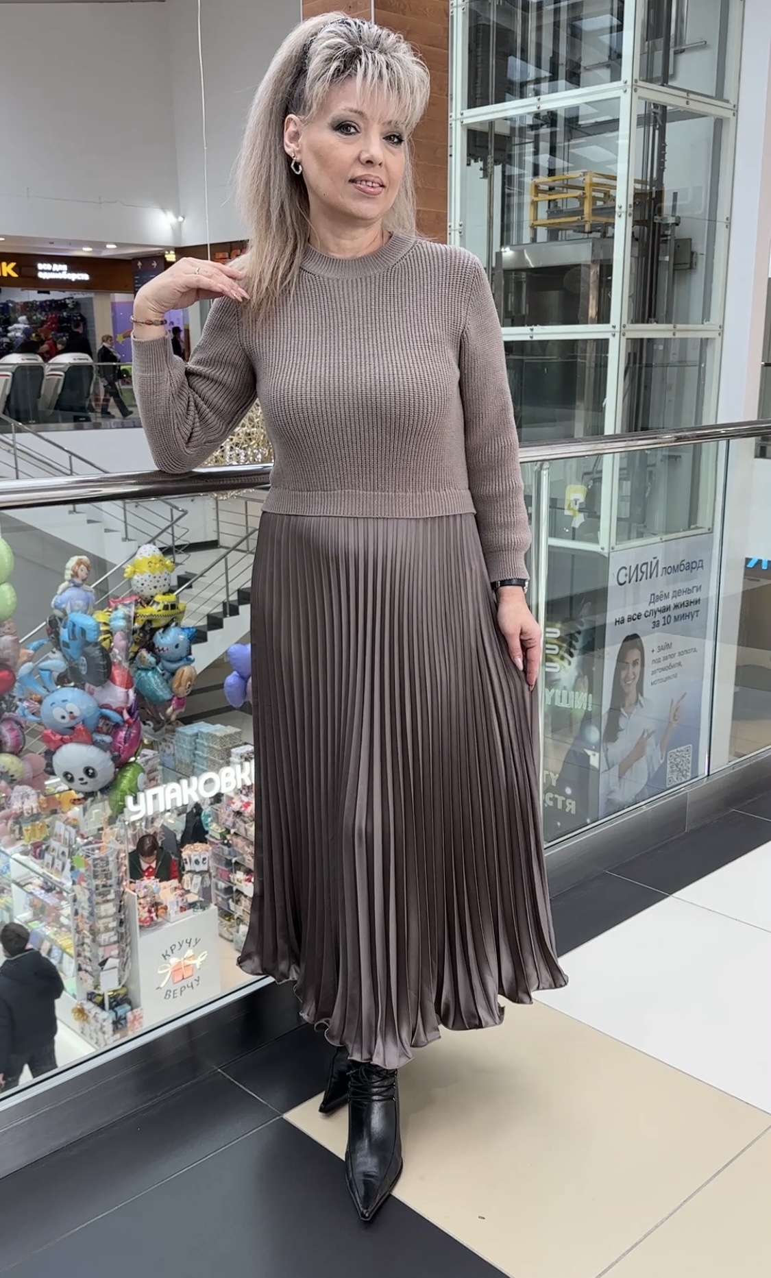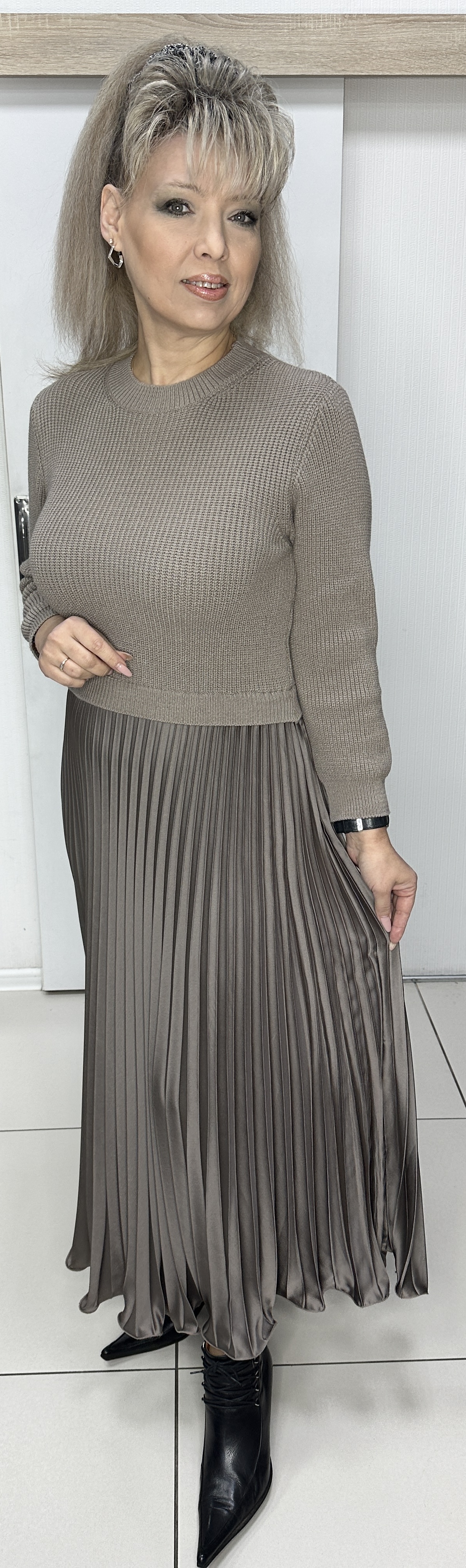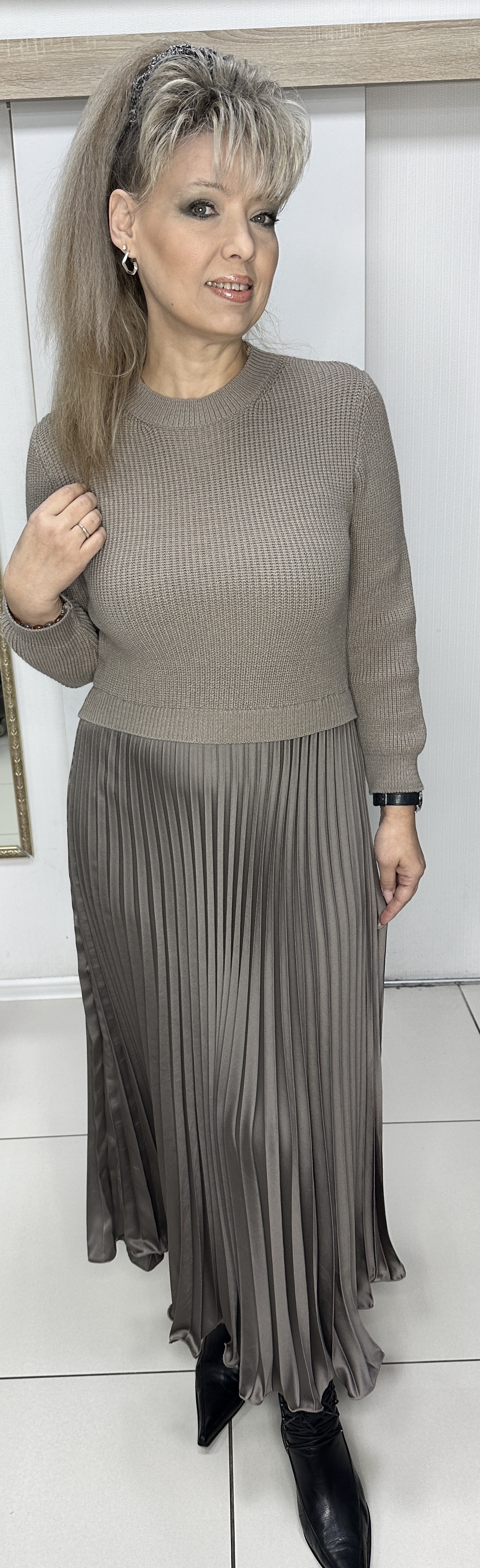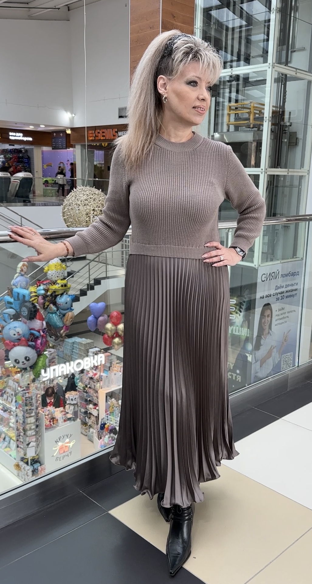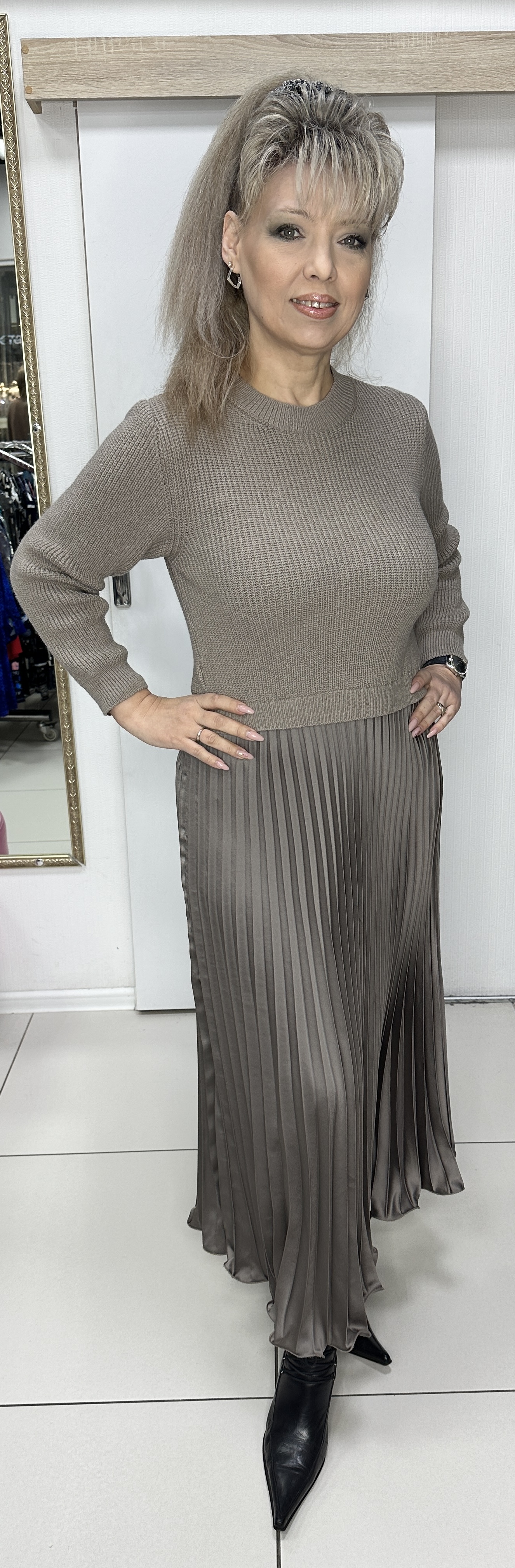 Очень милое и в то же время эффектное комбинированное платье! Верхняя часть платья - трикотажное, а низ швейка юбочка - плиссе. Модель 24339 на каждый прохладный день, а так же подойдет и для праздничного мероприятия. Это длинное платье отличный вариант для женщин, предпочитающих достойное качество и доступную цену. В наличии: черный и капучино цвета.