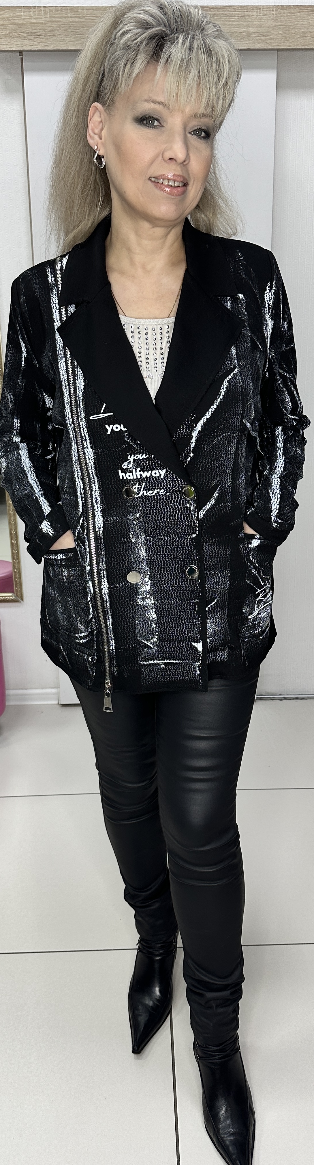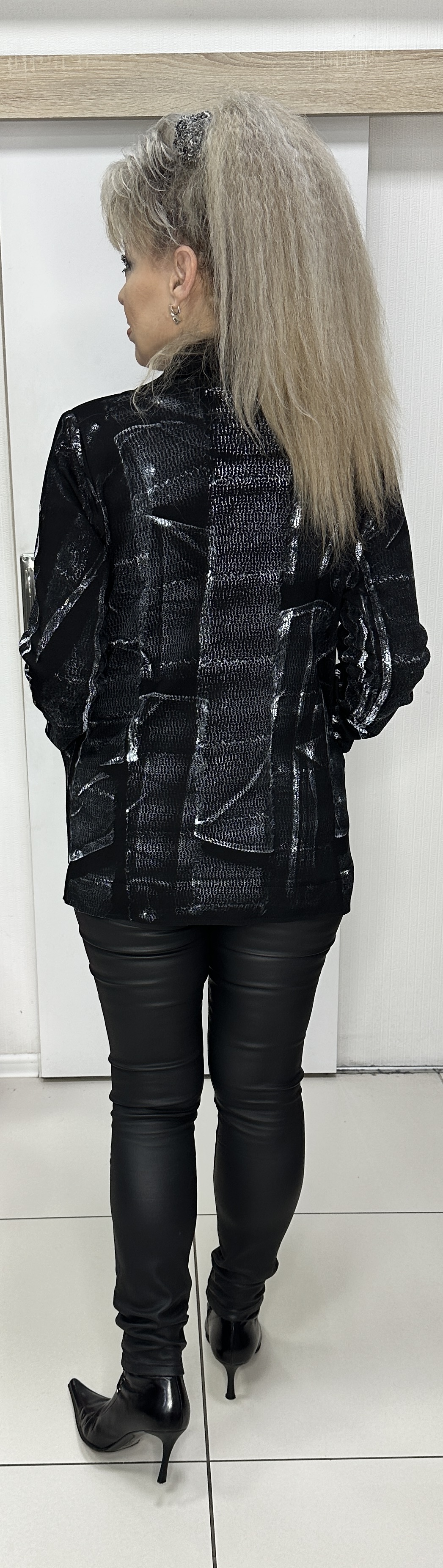 ВАУ! КАКОЙ ПИДЖАК! Хотите выглядеть нарядно и стильно? Трикотажный, черный пиджак с оригинальным черно-белым принтом модель 1609 именно то, что сделает ваш образ неповторимым и запоминающимся. Про него можно смело сказать он самодостаточный! Очень эффектный двубортный пиджак с белой отделкой и молнией с правой стороны. Хотите быть неповторимой, тогда остановите свой выбор на этом пиджаке!