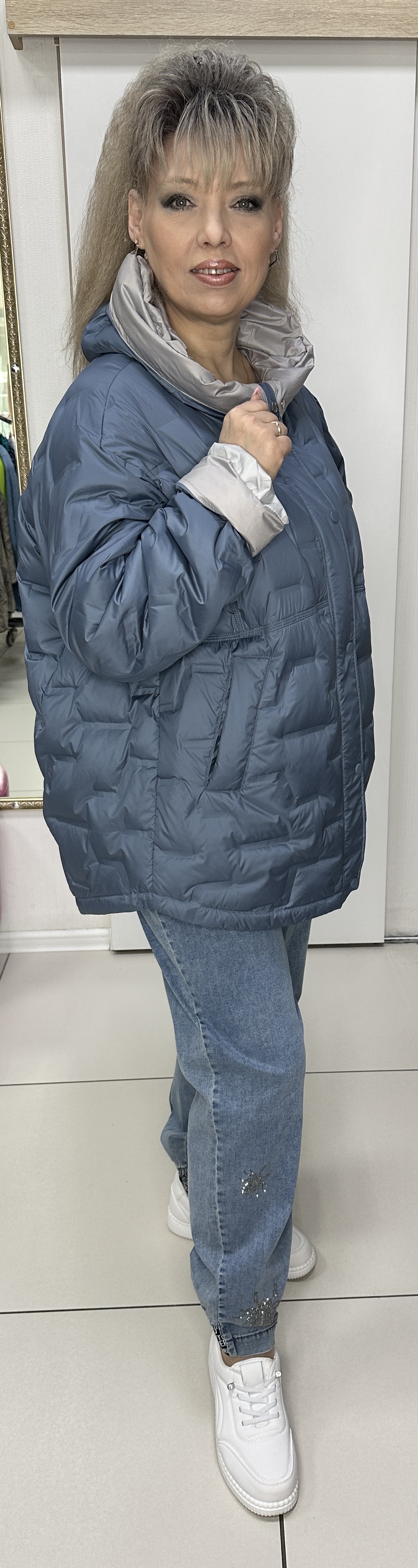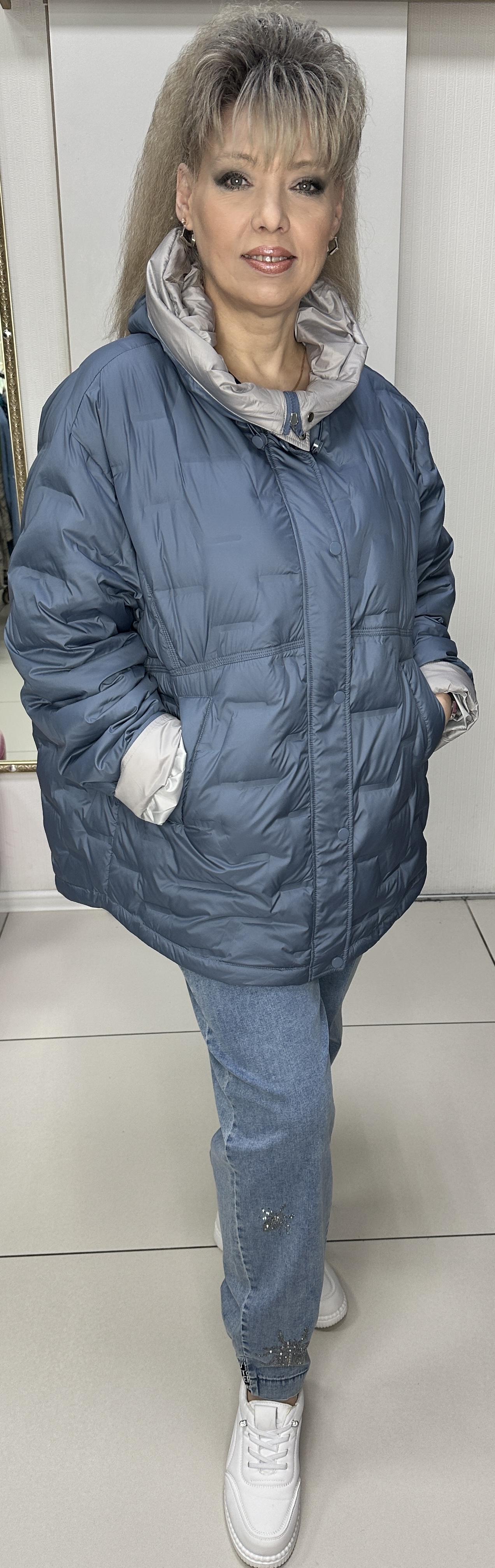 Вы можете купить весеннюю куртку в джинсовом цвете с серой подкладкой модель 2639 в магазинах У Стаса по доступной цене. Модель 2639: описание, фото, состав, размеры.