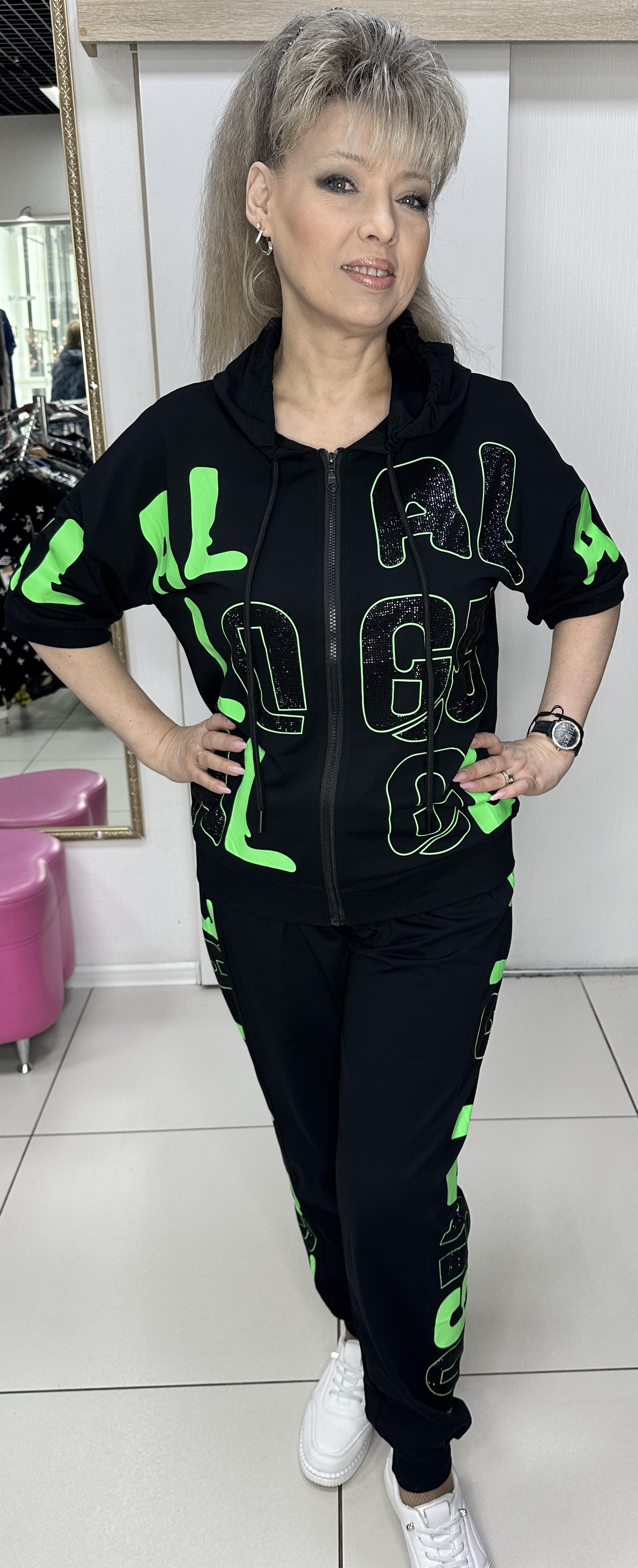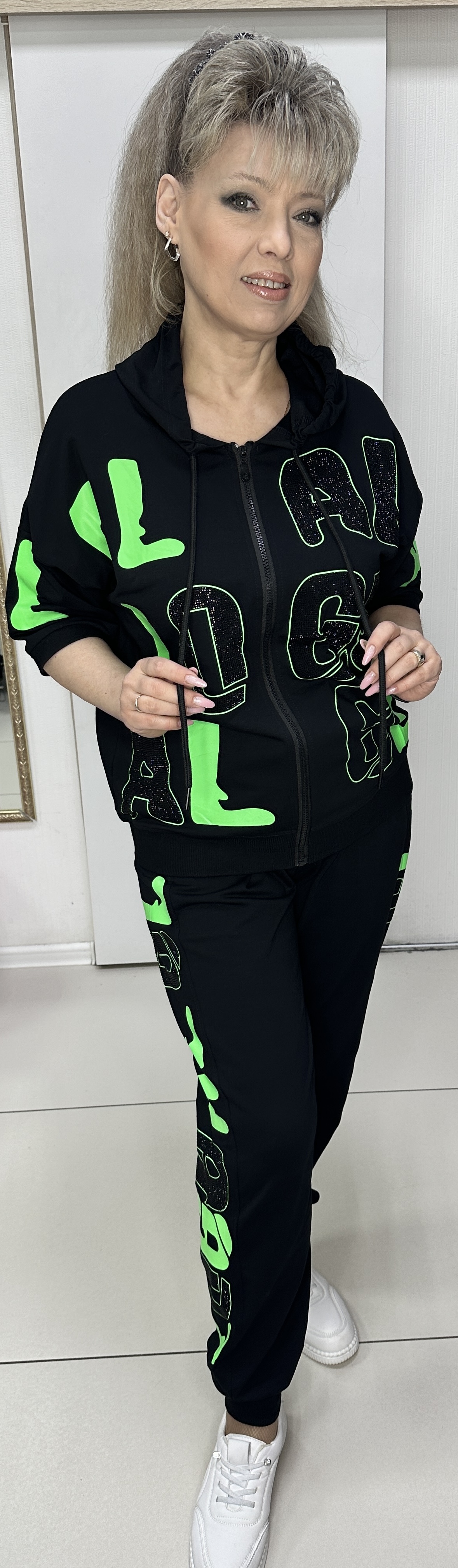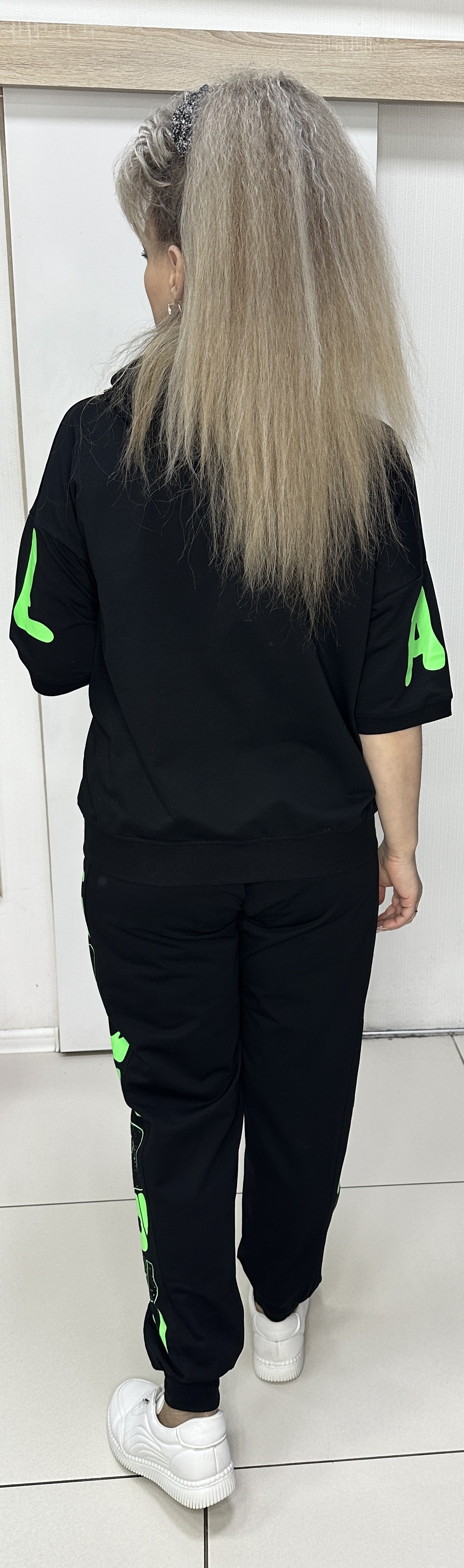 Вы можете недорого купить черный с неоновым принтом, спортивный костюм модель 897 в магазине У Стаса Костюм 897: цена. описание, фото