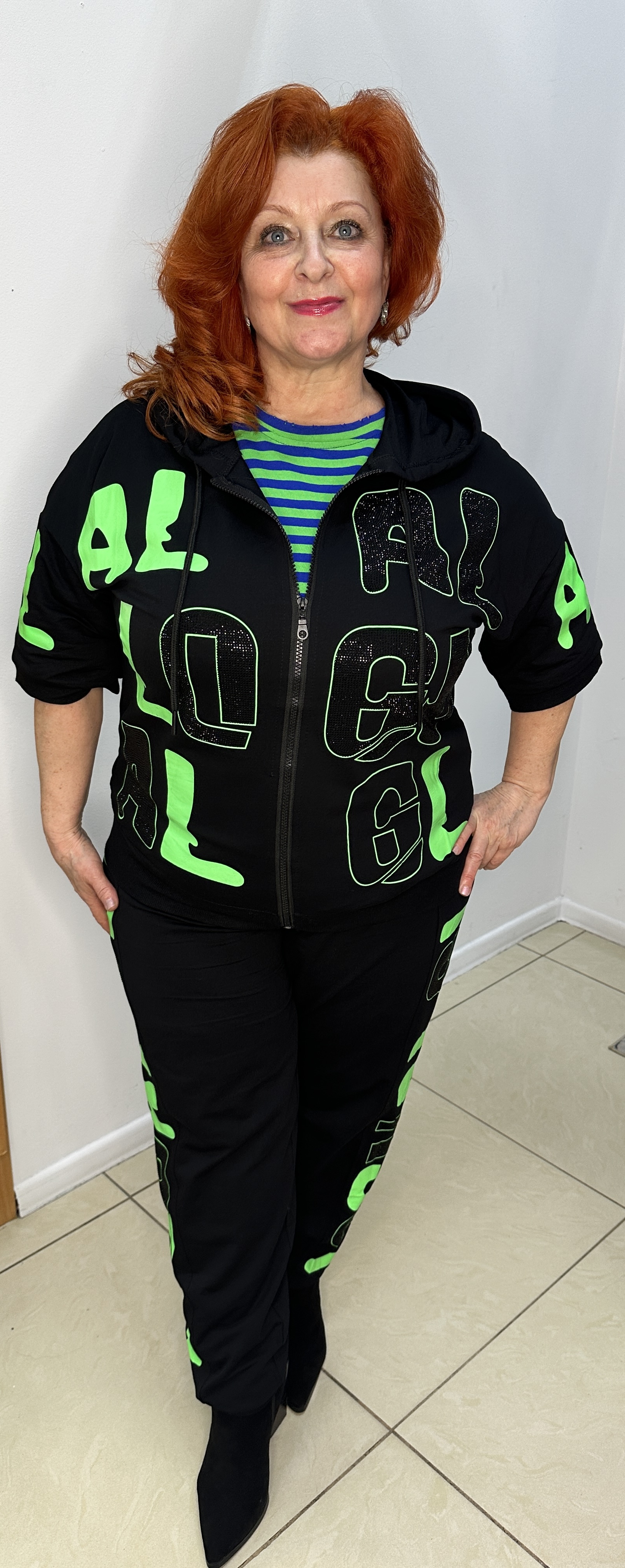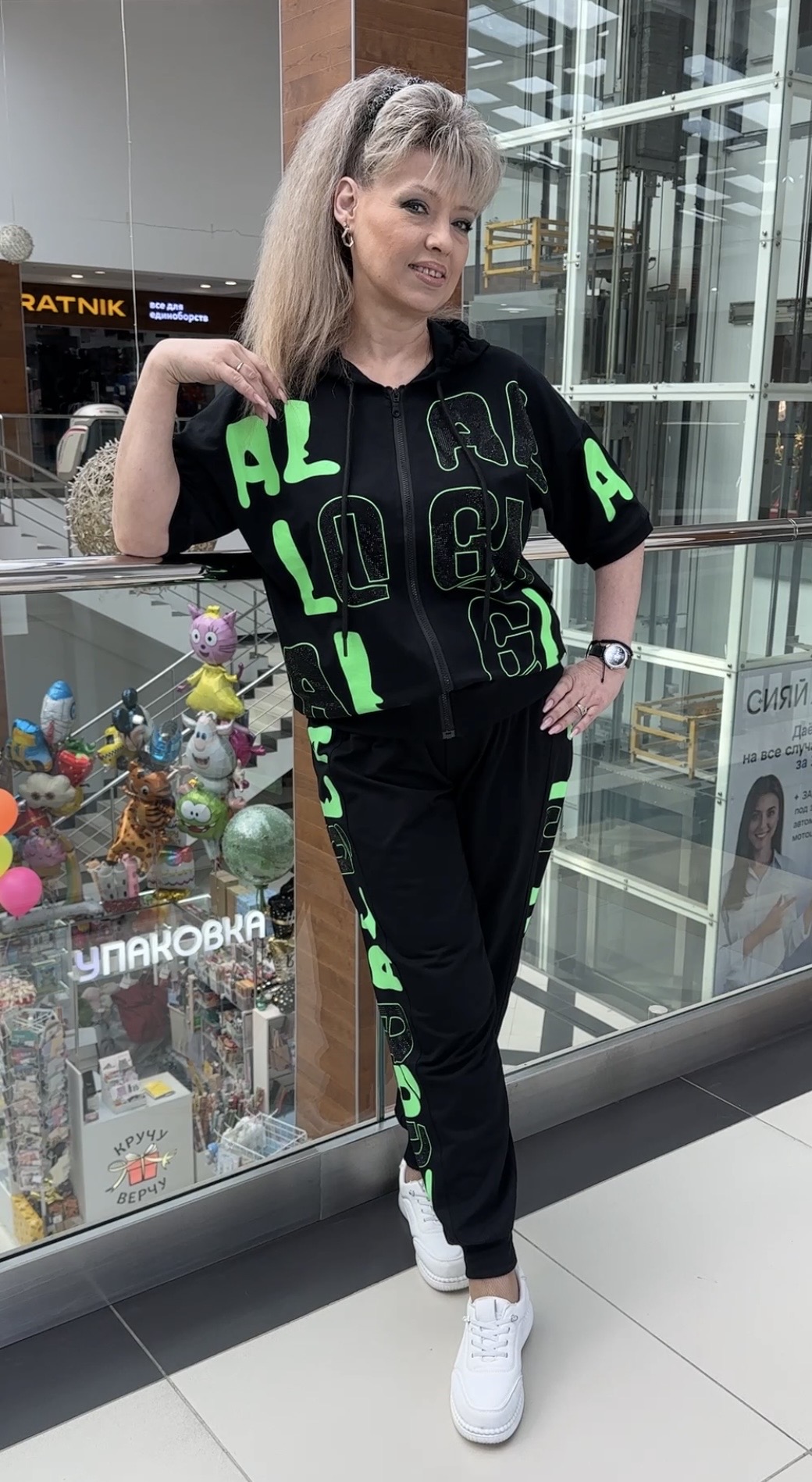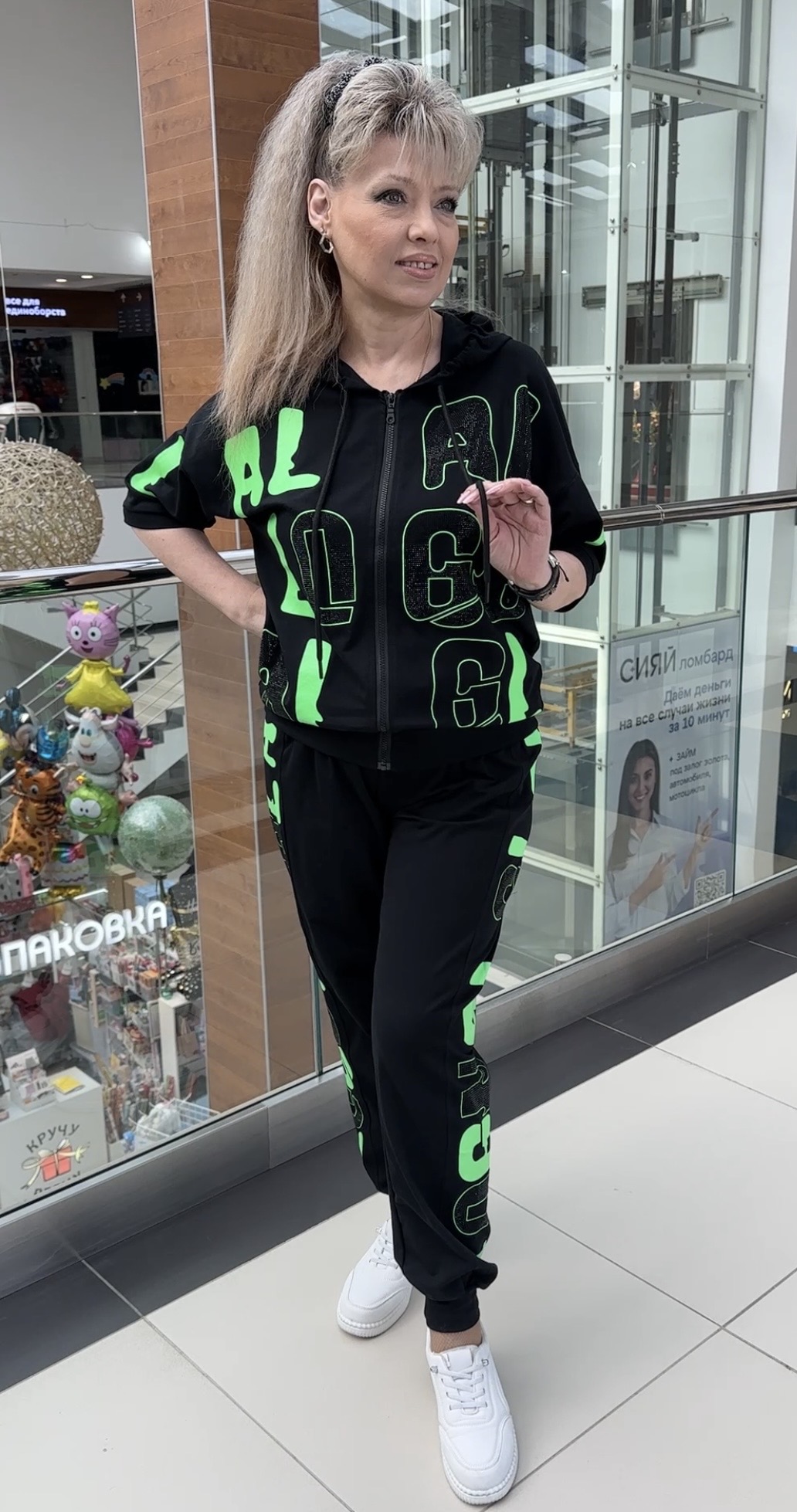 Вы можете недорого купить черный с неоновым принтом, спортивный костюм модель 897 в магазине У Стаса Костюм 897: цена. описание, фото