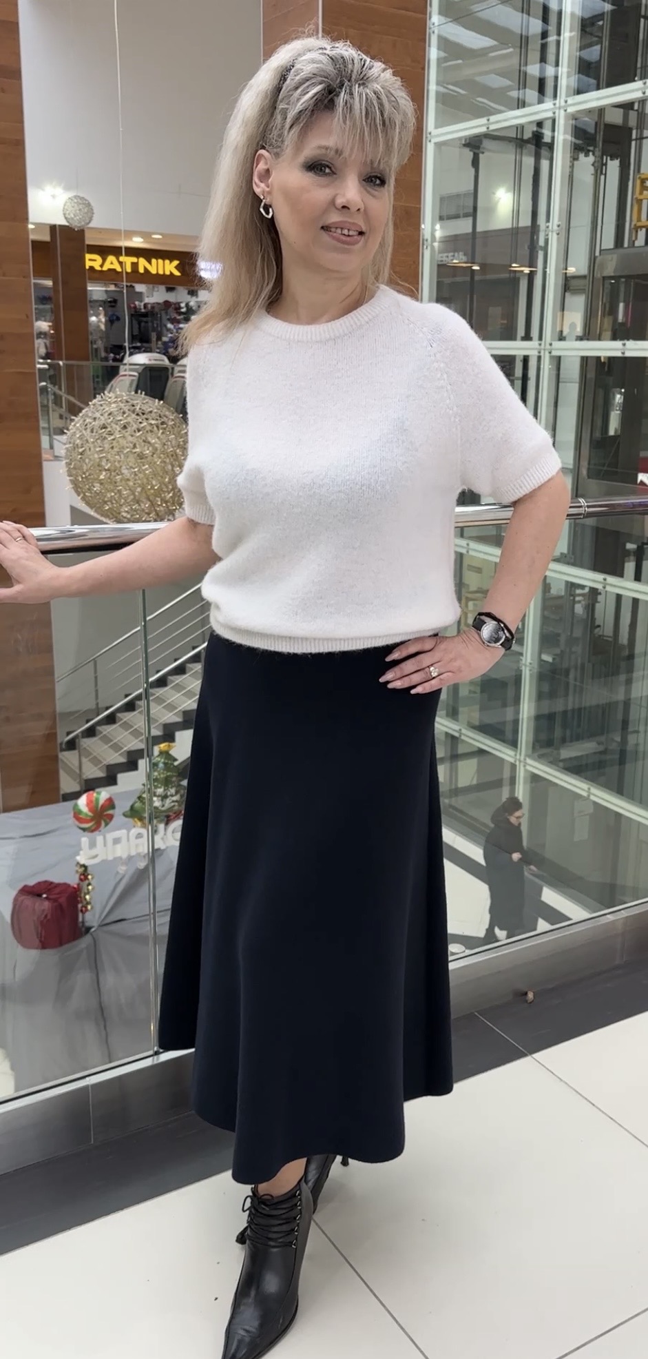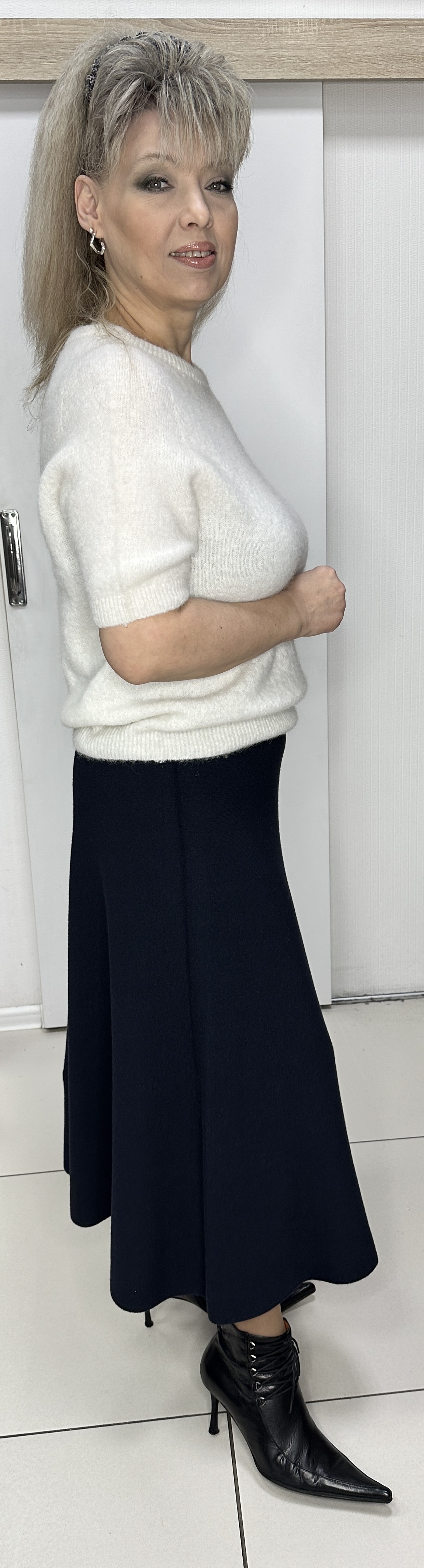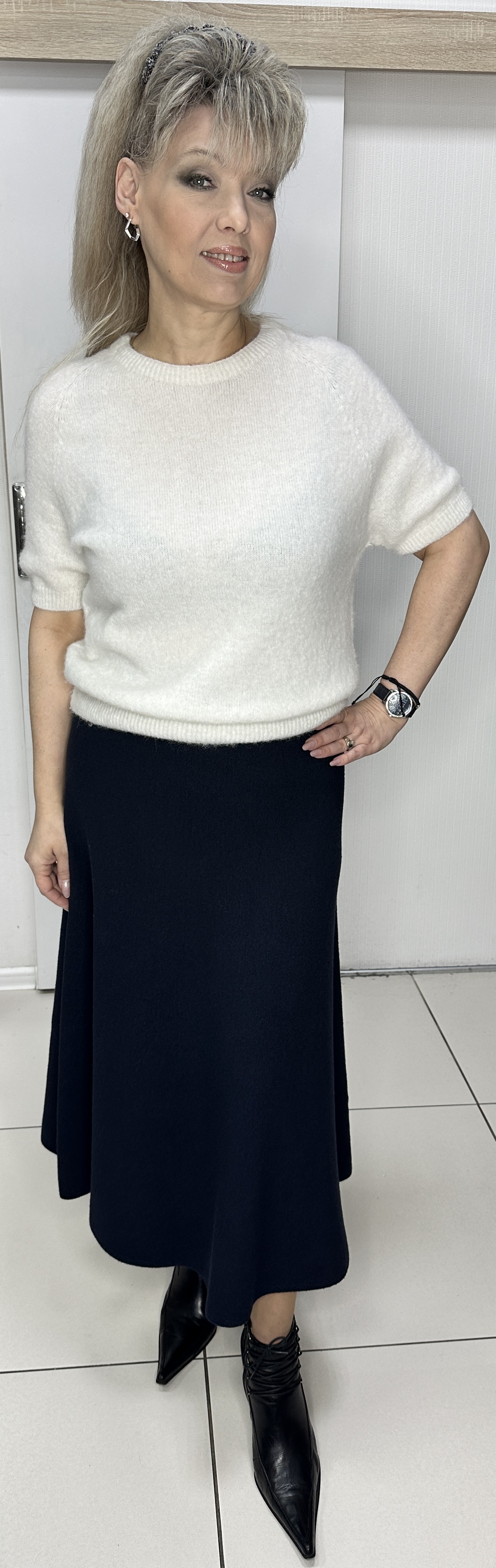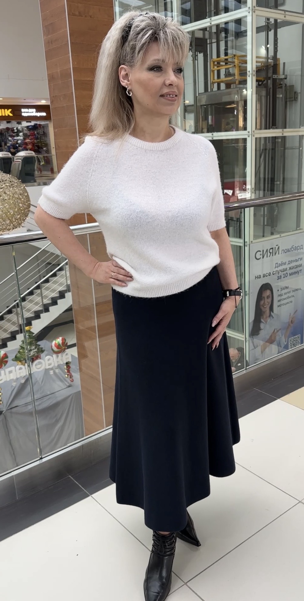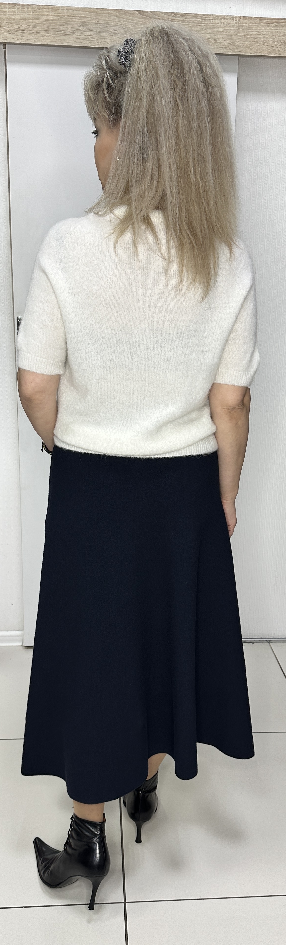 Юбка-гаде трикотажная в темно-синем цвете, длинная в поясе-резинка, модель 9549 на любое мероприятие. Теплая и модная. Со светлым верхом может стать достойным вариантом офисной одежды.